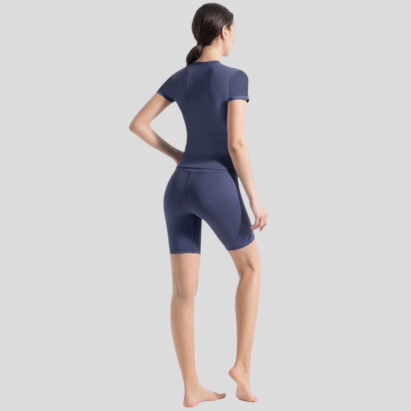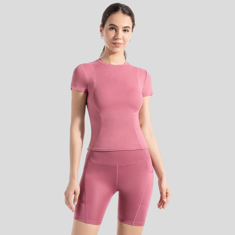 Setelan Baju Lengan Pendek Celana Pendek Poket Gym Yoga Pakaian Wanita Olahraga MTDX-MT5FKD.Poket