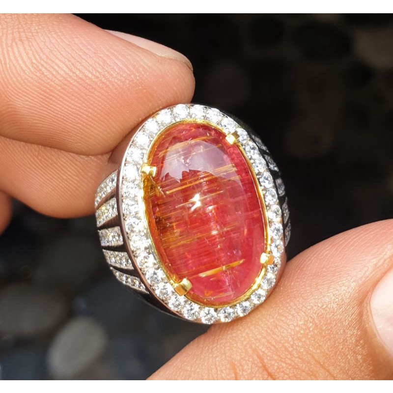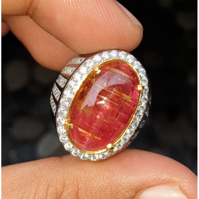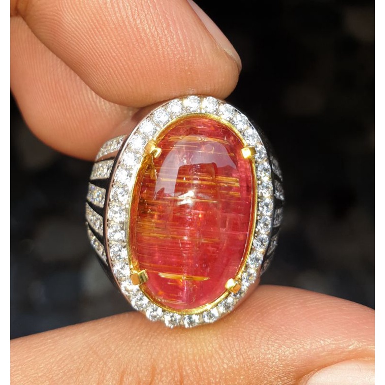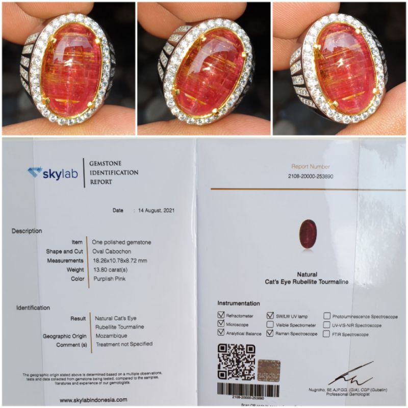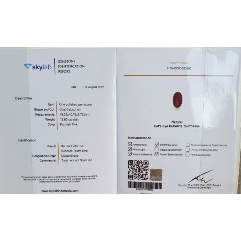 Natural Cat Eye Rubellite Tourmaline Jumbo Sertifikat 13.80 crt