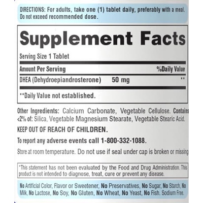 Puritan Pride DHEA 25mg 100 Tablet / 50mg 50 & 100 Tablet Hormone Support