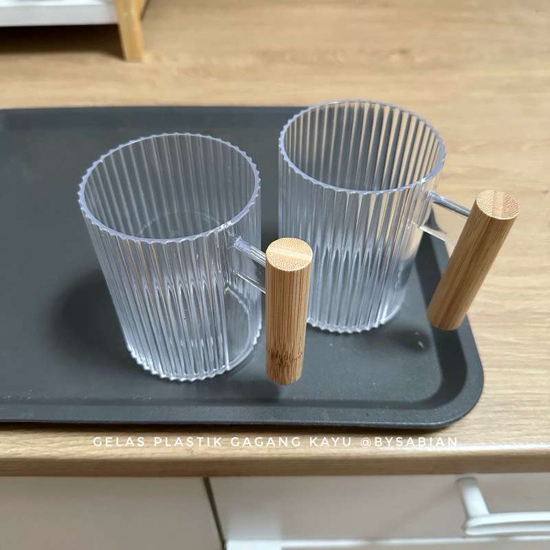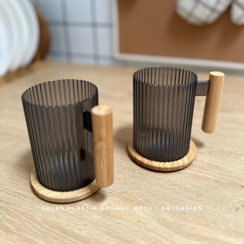 Gelas Plastik Gagang Kayu / Gelas Plastik Gagang Gelas Estetik