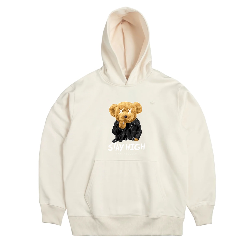 JAKET HOODIE CREAM TEDDY BEAR STAY HIGH WANITA BIG SIZE JUMBO