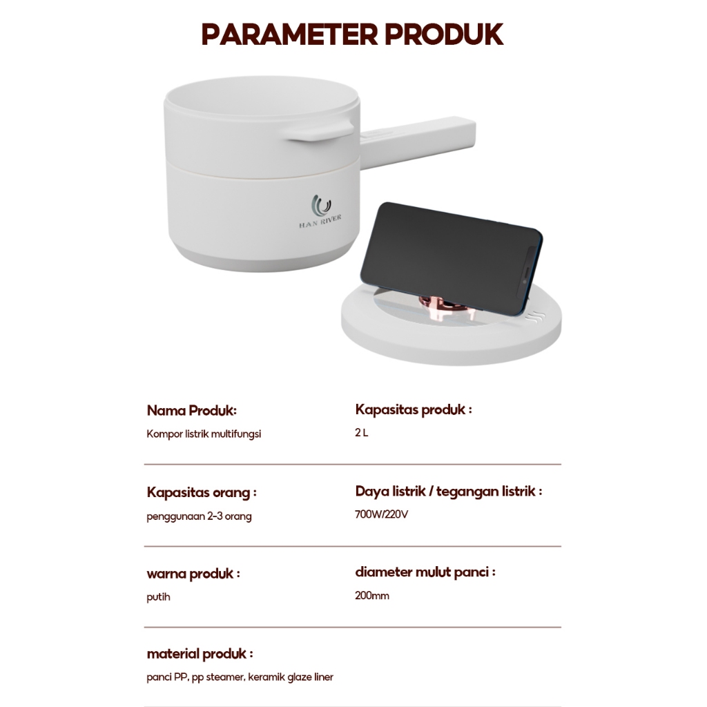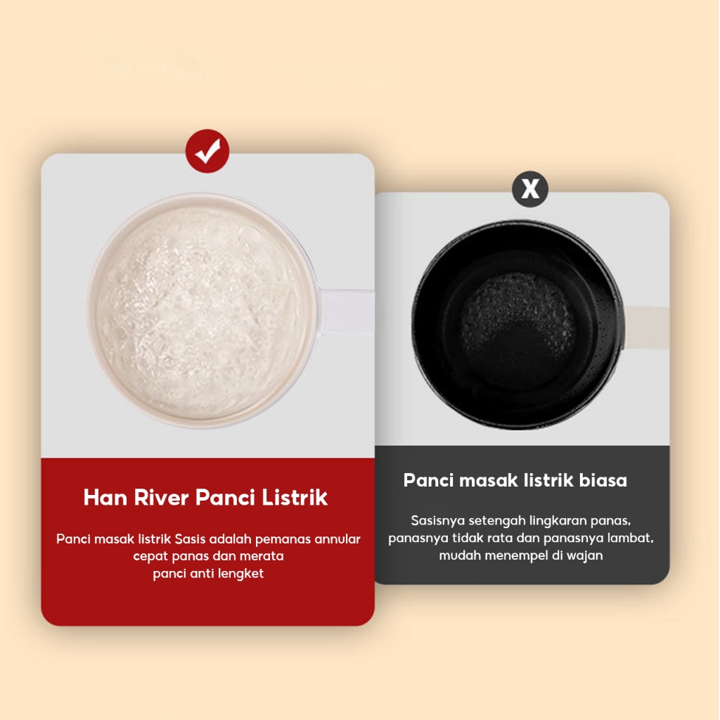 HAN RIVER Panci Listrik Serbaguna 2L / Panci Listrik Multifungsi / Panci Elektrik Penggorengan