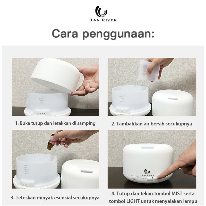 HAN RIVER Humidifier Air Ultrasonic Diffuser Aroma Purifier LED 500ML