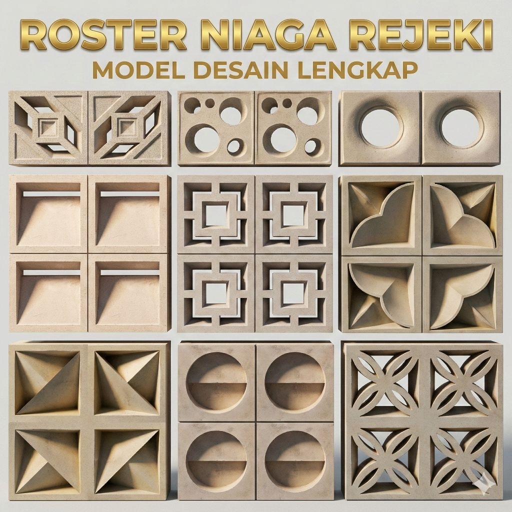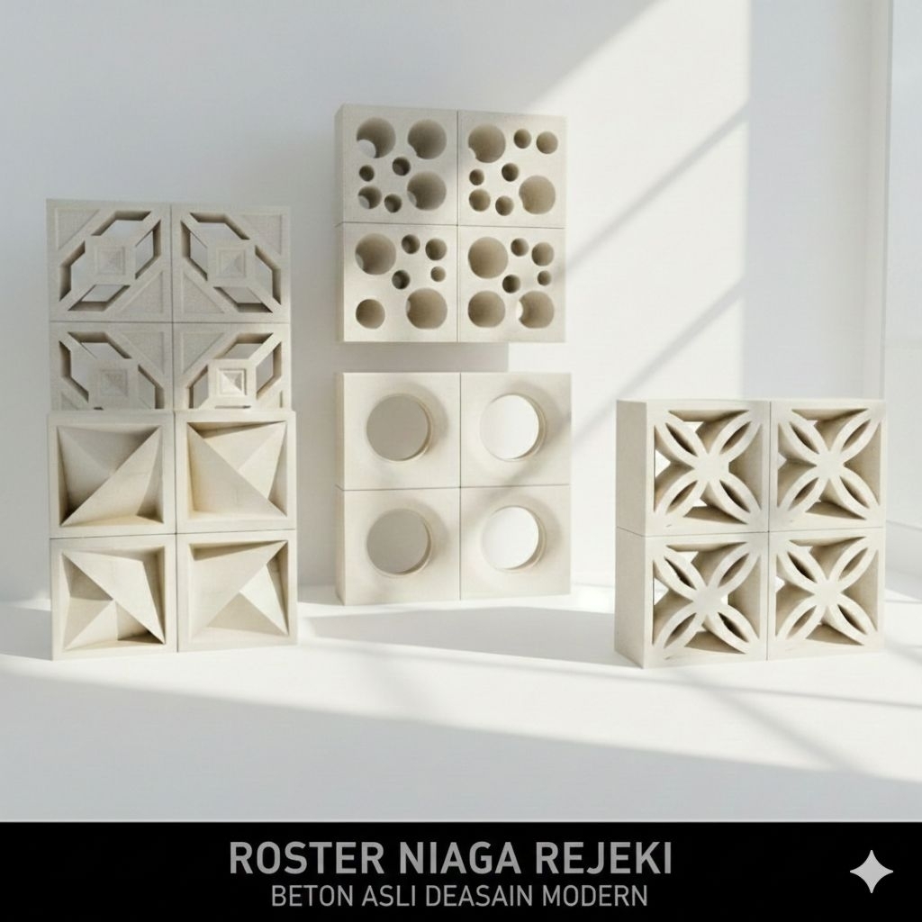 Roster Beton Minimalis, Loster Putih, Ukuran 20x20, Model Lengkap, Ventilasi Udara, Nako Dua Sisi