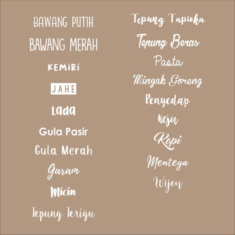 Tustic Stuff Stiker Bumbu Dapur Ukuran 2 x 8 cm