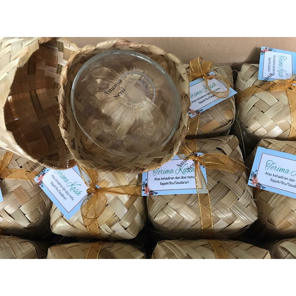 Souvenir Kemasan Besek Packaging Bambu Rotan Besek Ukuran 8cm Anyaman Bambu