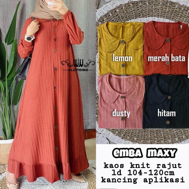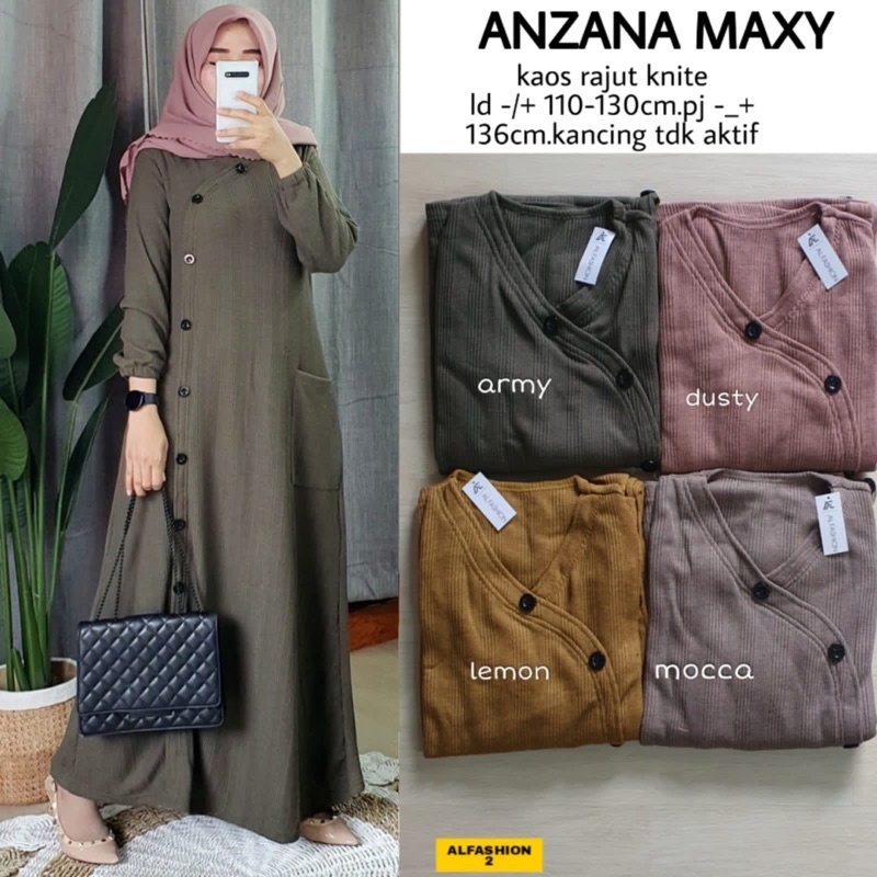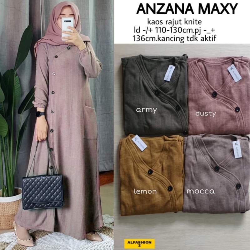 Baju Gamis Kaos Rajut Knite Jumbo LD 130 XXXL Terbaru Kancing Tidak Aktif Anzana MAXY by Alfashion Kinaya ww