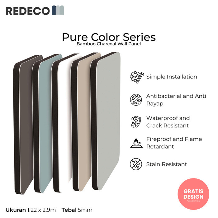 Redeco Bamboo Charcoal Wall Panel Pure Color Series | PVC Wall Board Pure Color Series | Seamless Wallpaper Hiasan Dinding Dekorasi Dinding