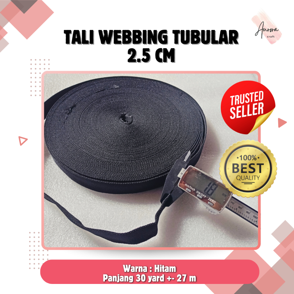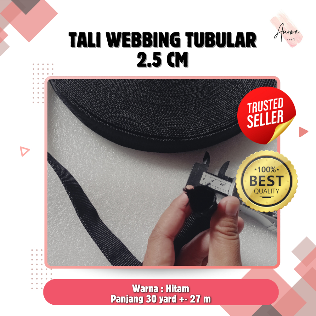 (PER ROLL) TALI WEBBING TUBULAR / Double - LUBANG UKURAN 2.5 CM PANJANG 30 YARD - HITAM BISBAN CLIMBING
