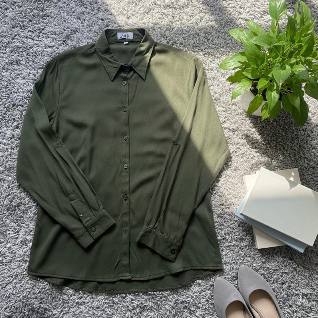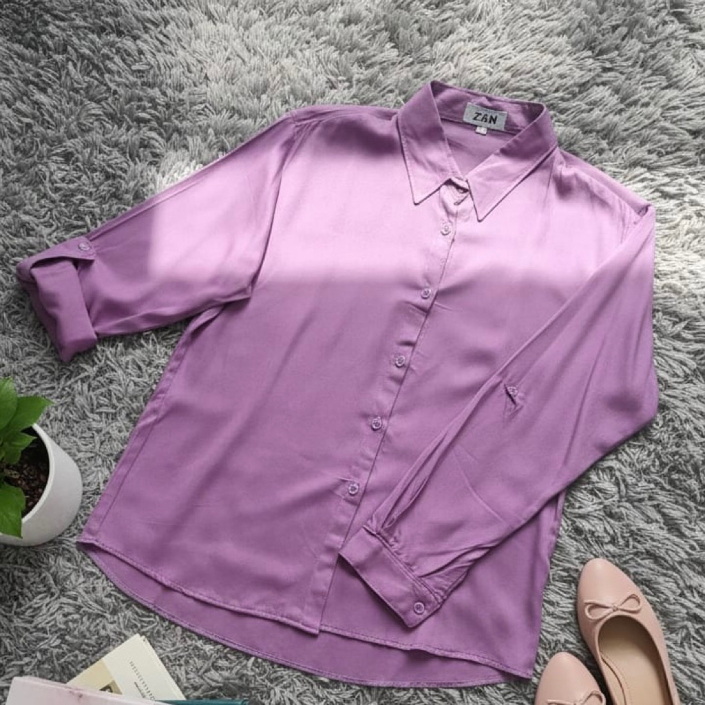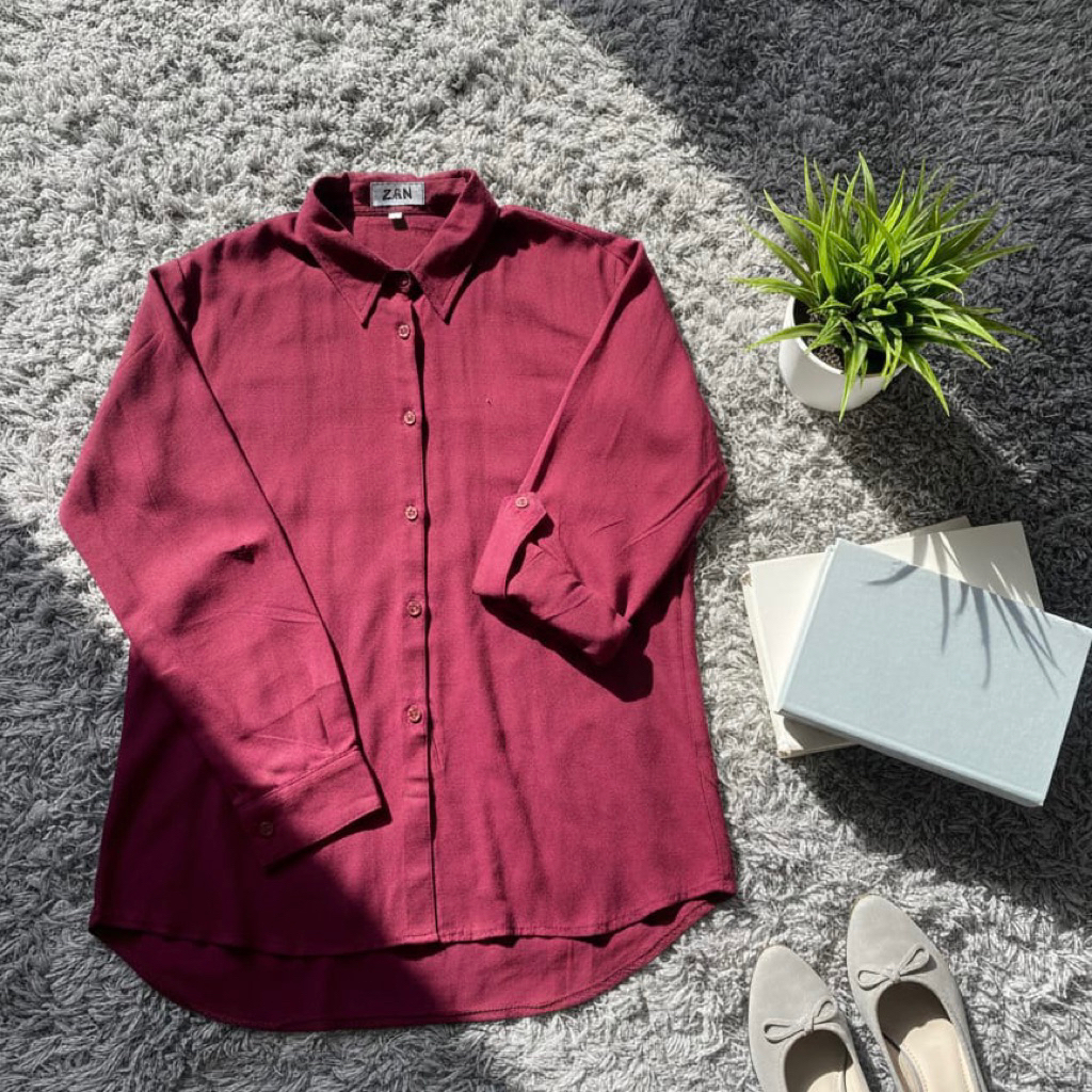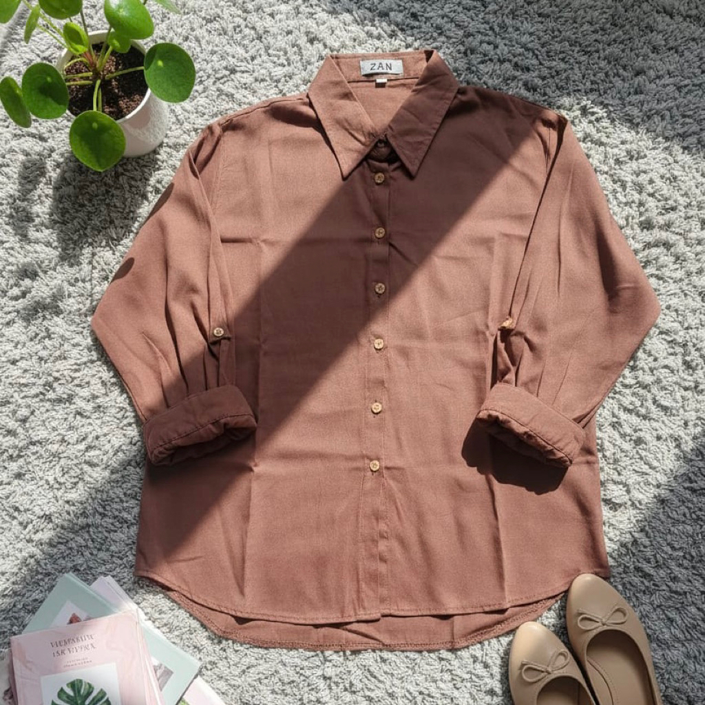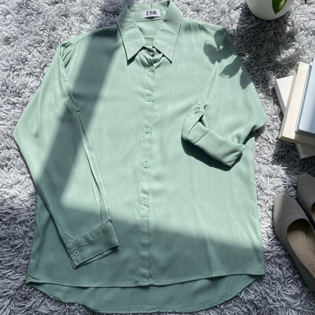 ZN6 Kemeja Wanita Rayon Twill Polos Adem Lengan Panjang Kancing Sekoder Kemeja Basic Kasual Oversize Jumbo
