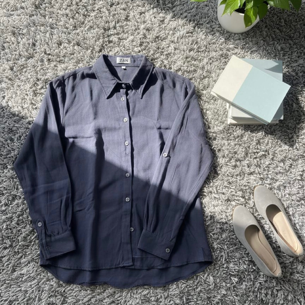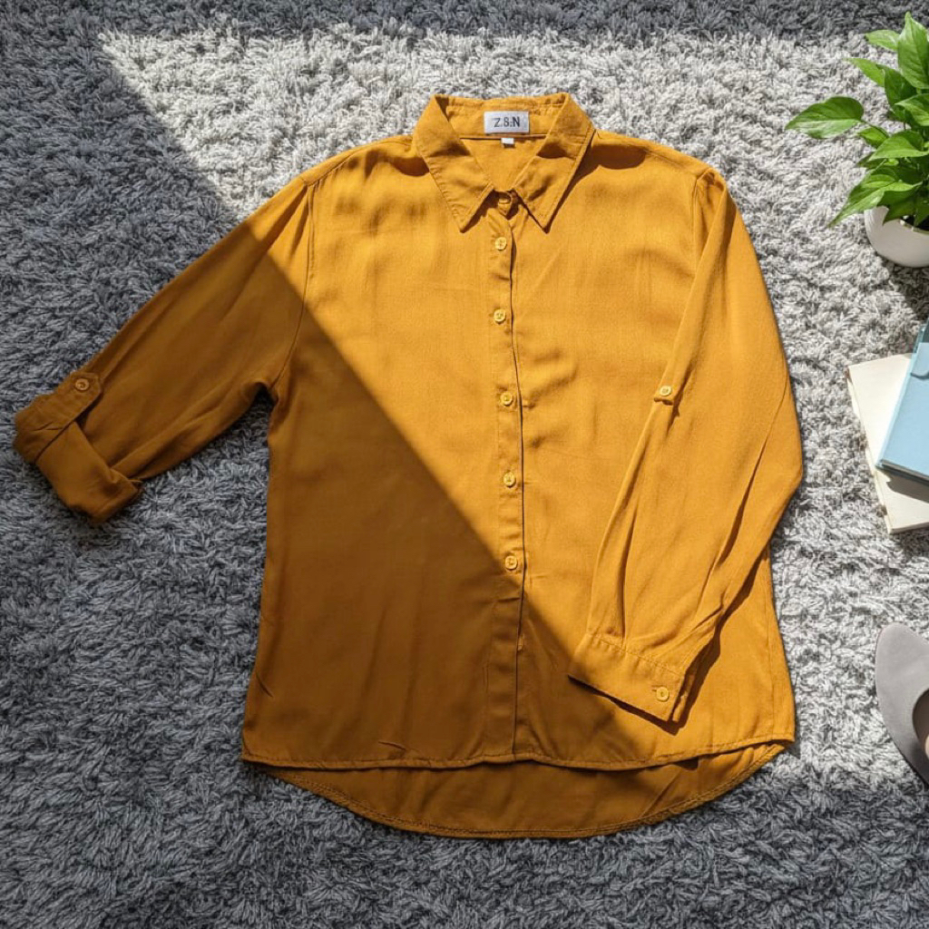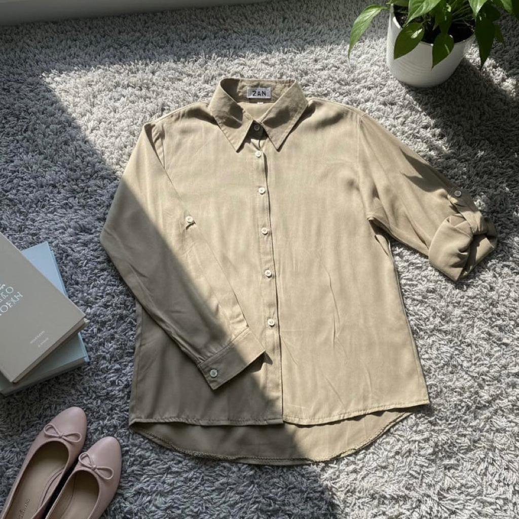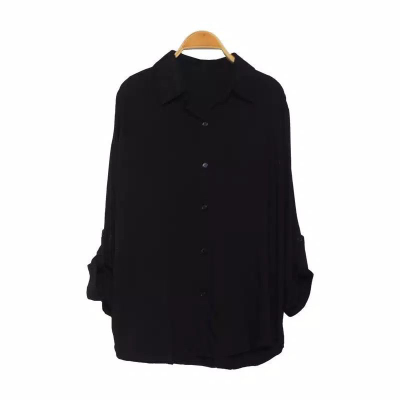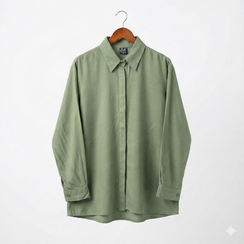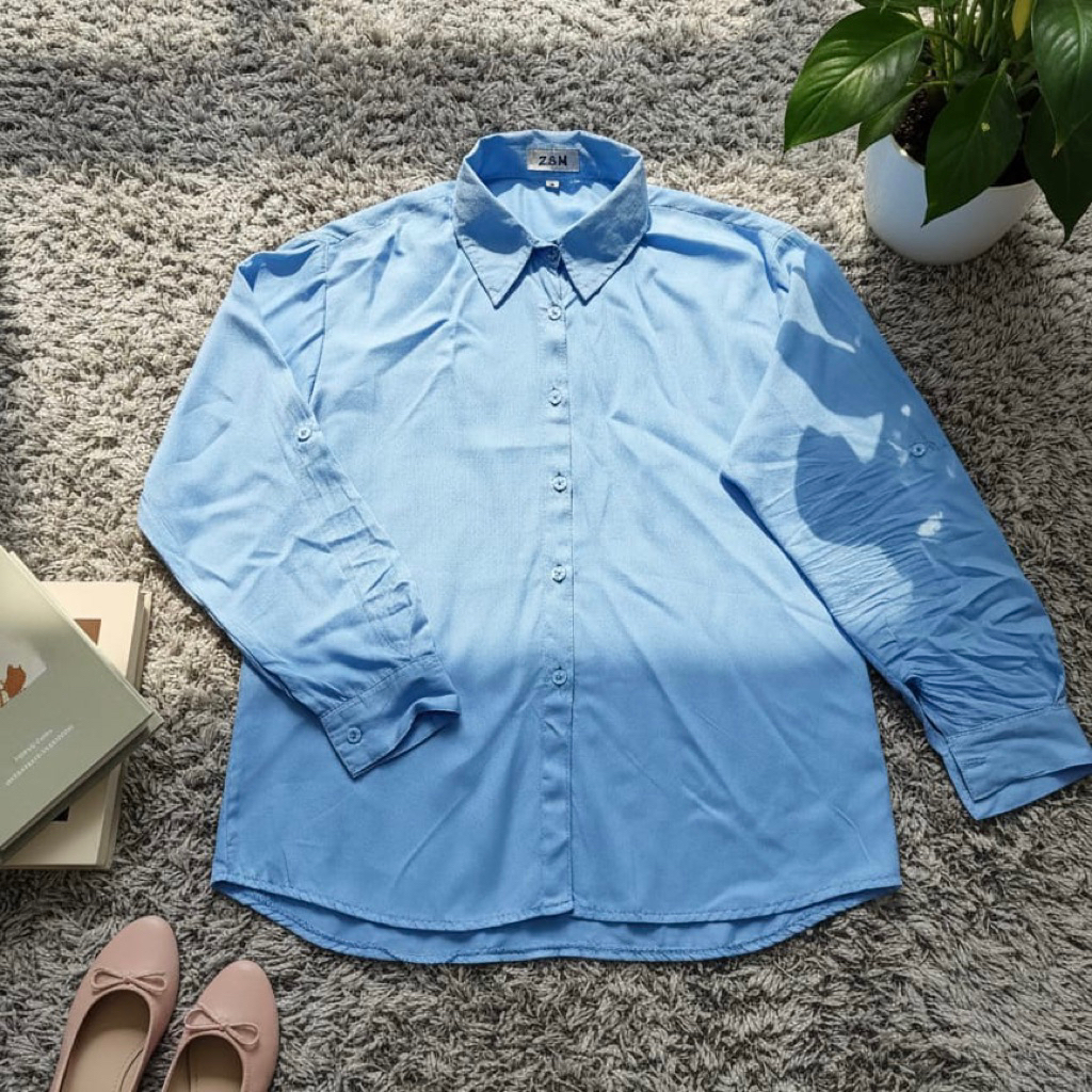 ZN6 Kemeja Wanita Rayon Twill Polos Adem Lengan Panjang Kancing Sekoder Kemeja Basic Kasual Oversize Jumbo