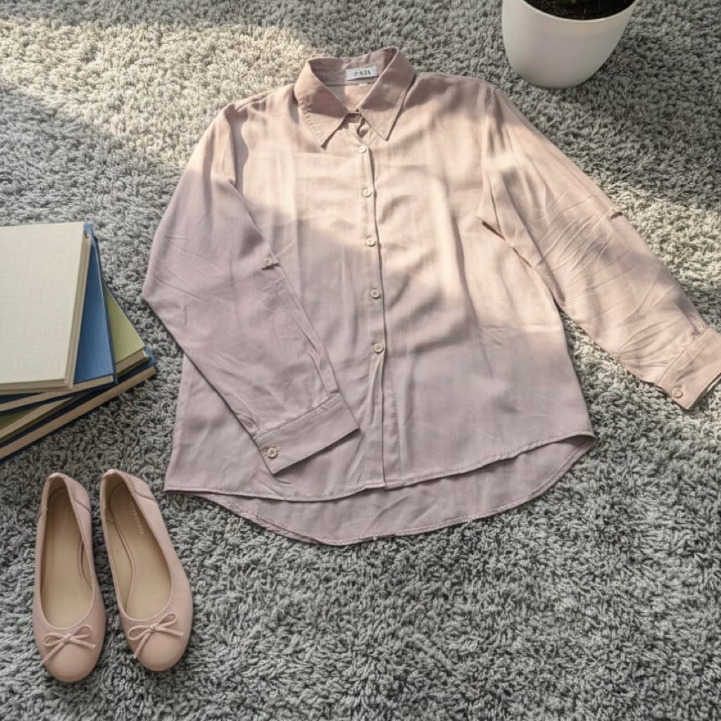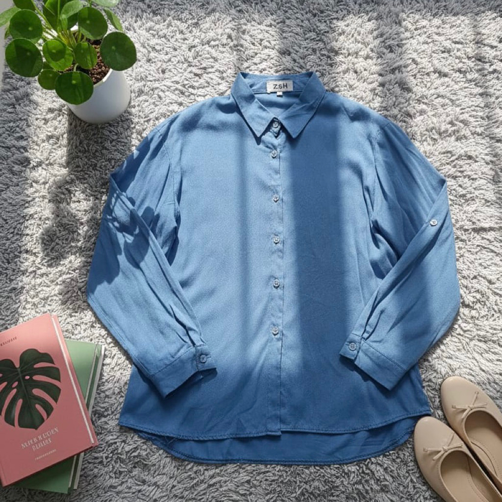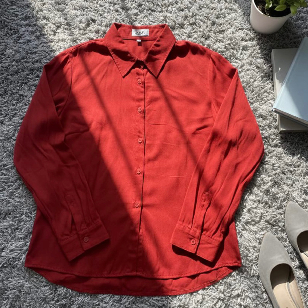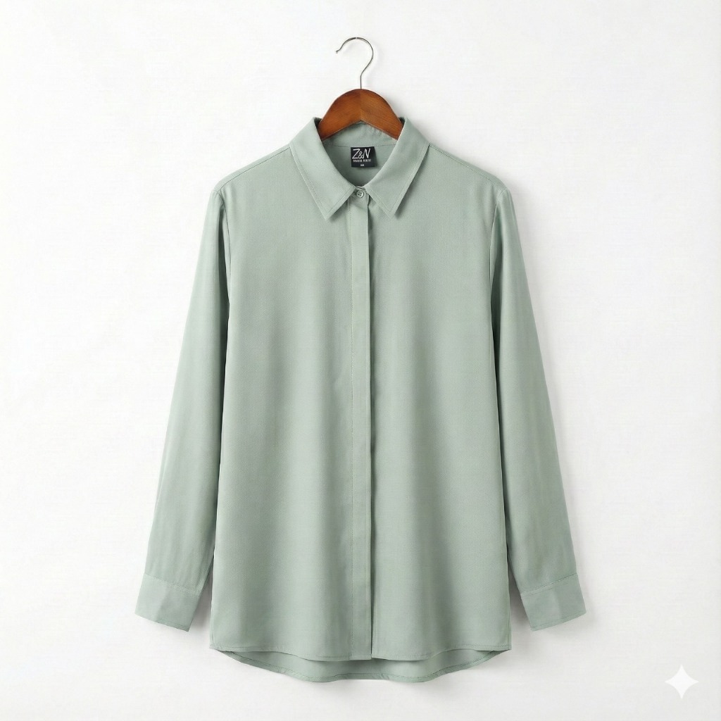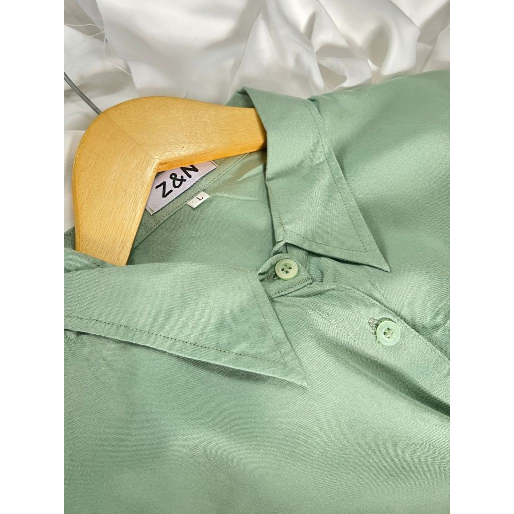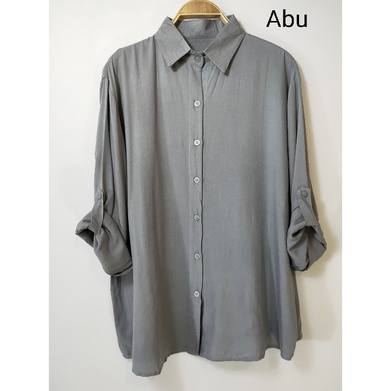 ZN6 Kemeja Wanita Rayon Twill Polos Adem Lengan Panjang Kancing Sekoder Kemeja Basic Kasual Oversize Jumbo
