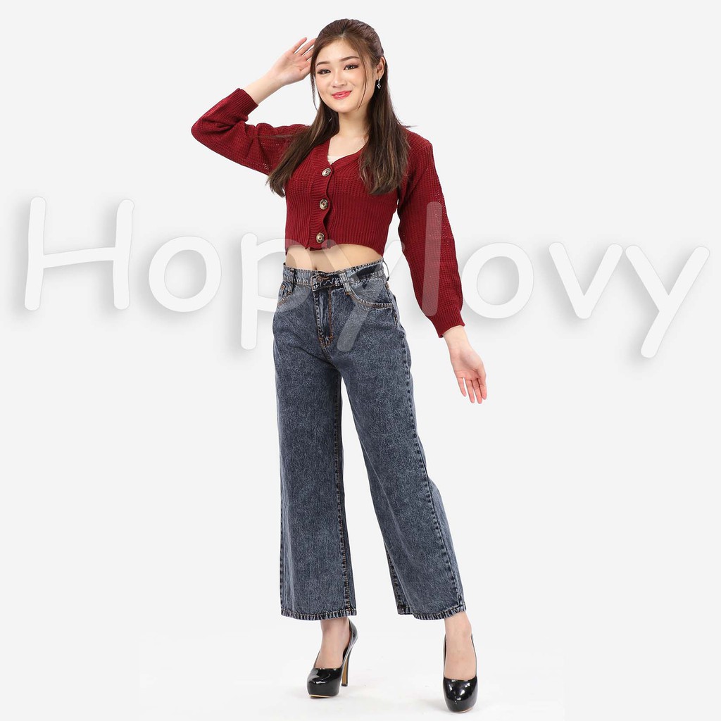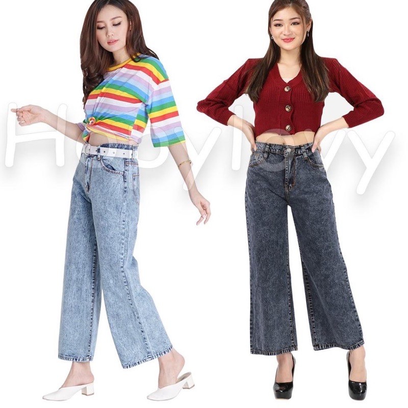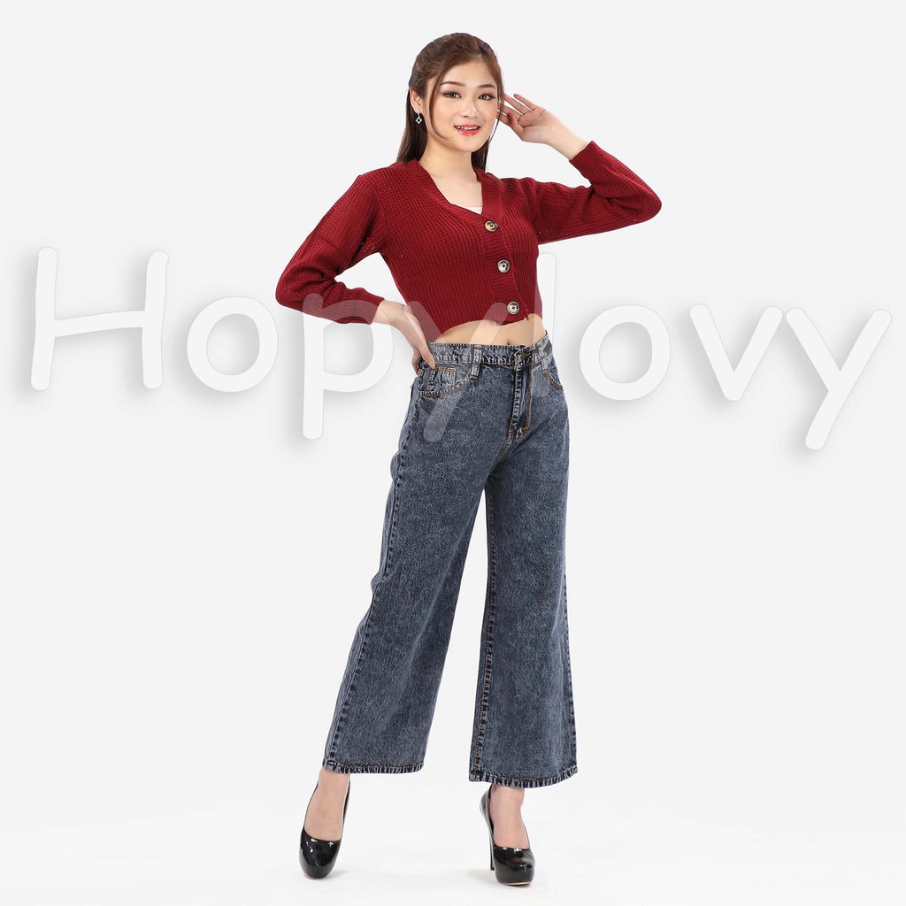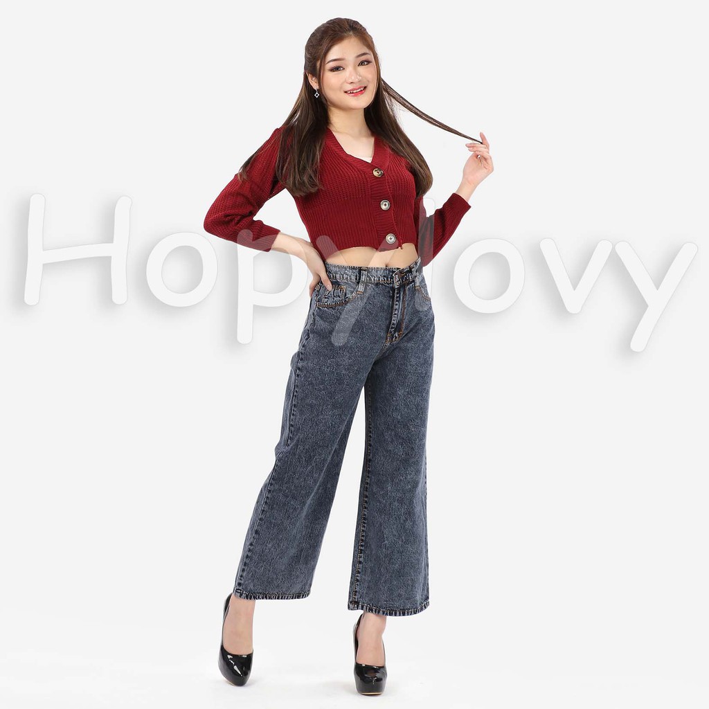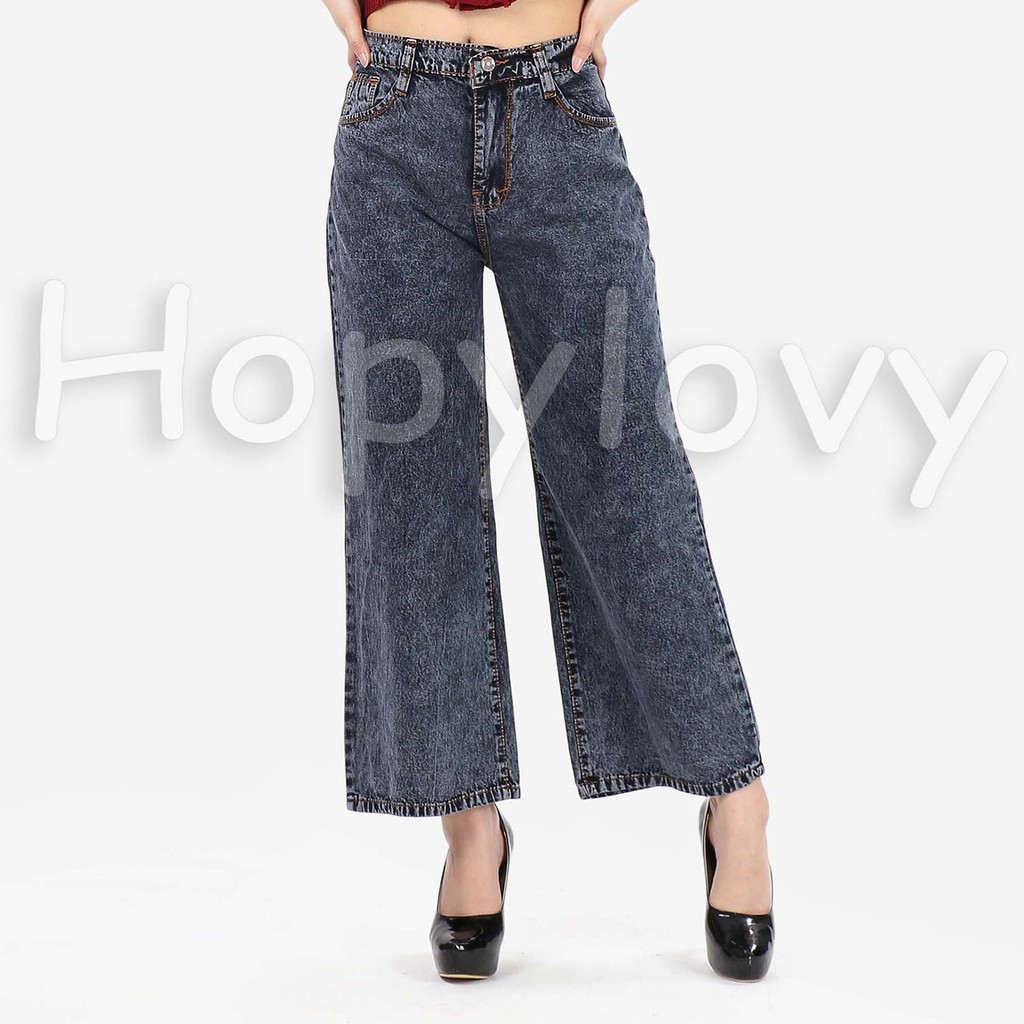 HOPYLOVY - Celana Jeans Boyfriend Wanita Model Kulot Snow Acid Asterada