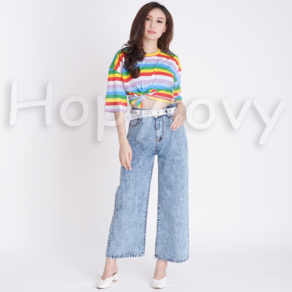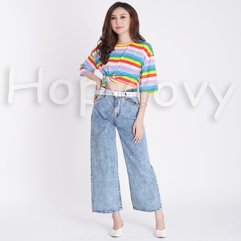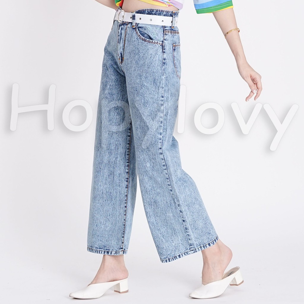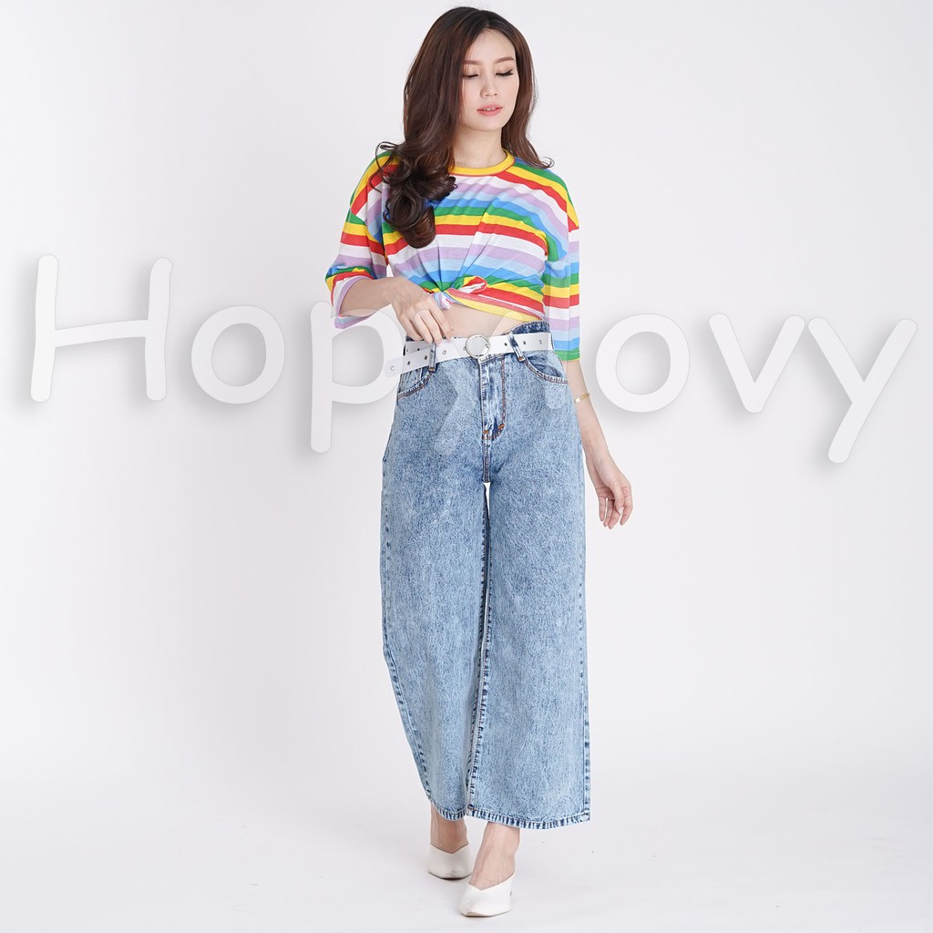 HOPYLOVY - Celana Jeans Boyfriend Wanita Model Kulot Snow Acid Asterada