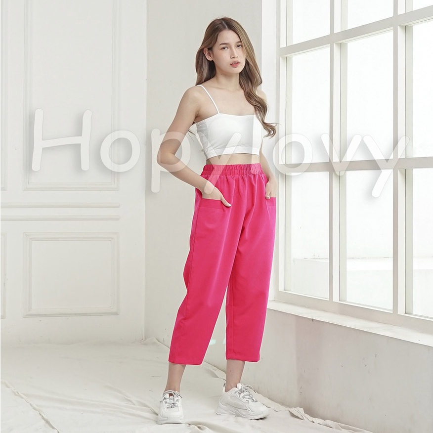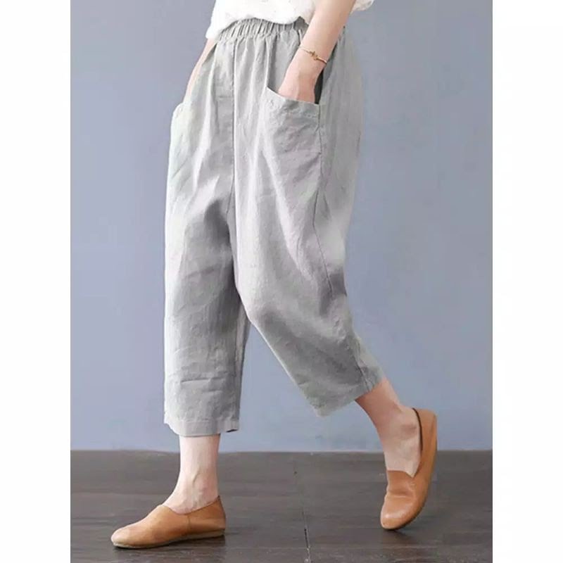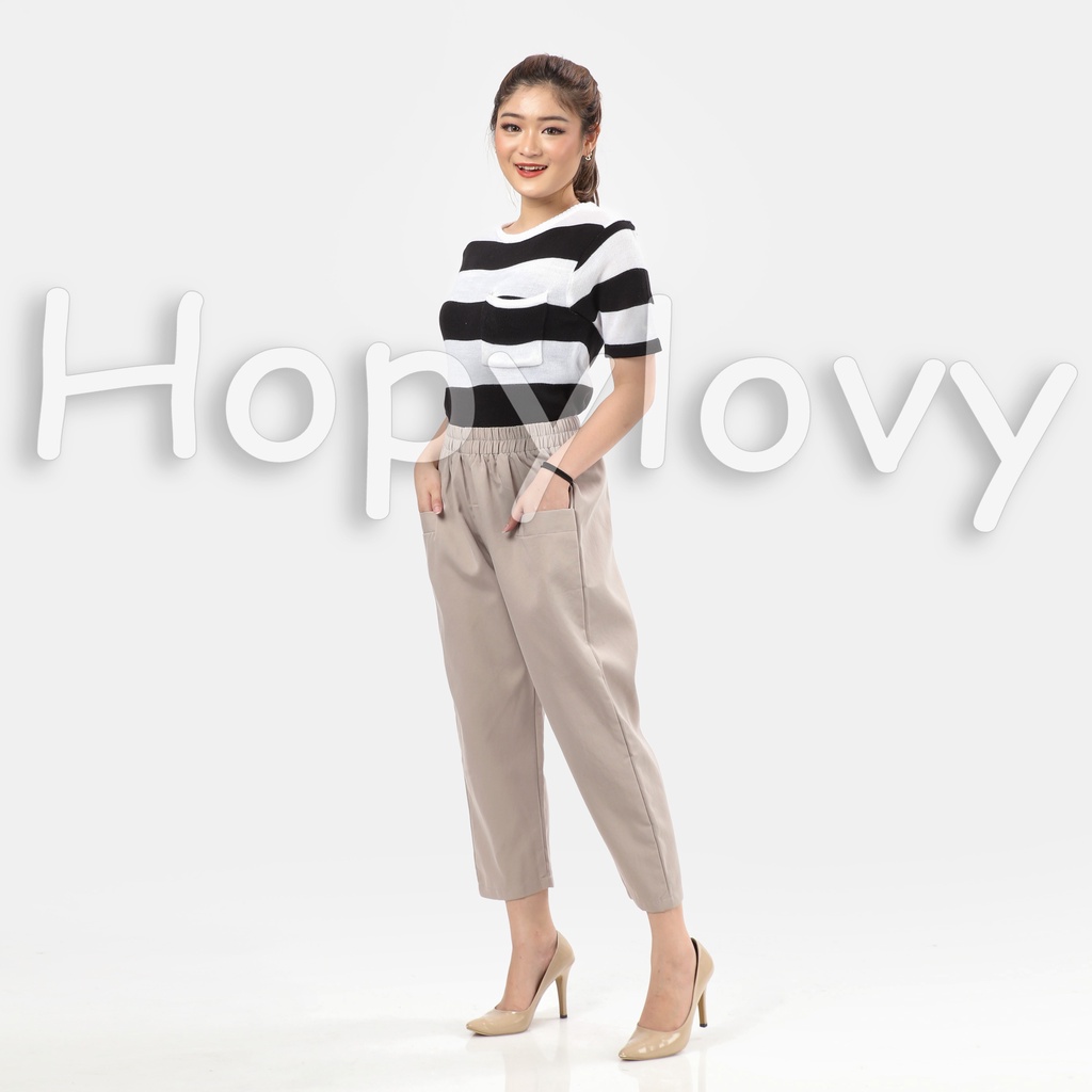HOPYLOVY Celana Kulot Wanita | Celana Highwaist Pinggang Karet Loose Kulot Katun High Waist Catalia