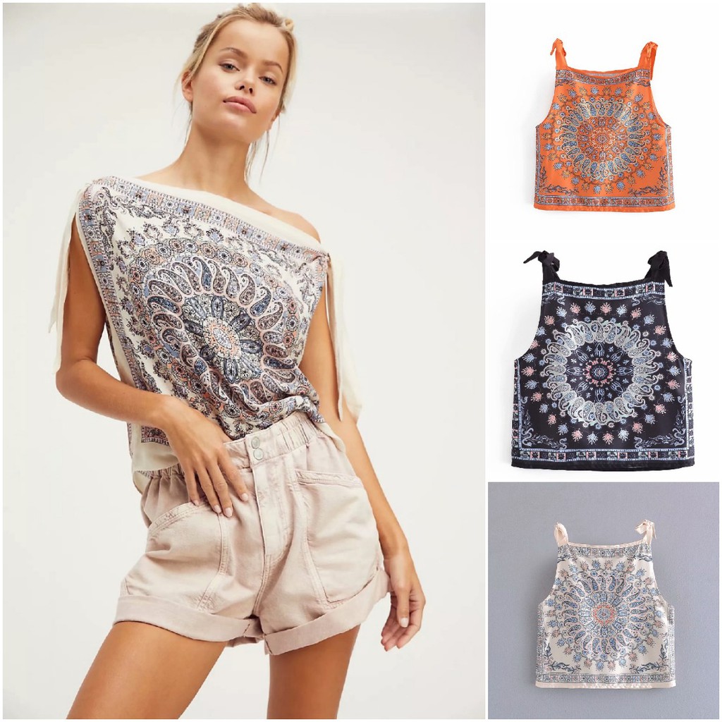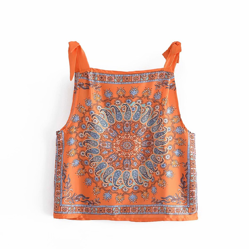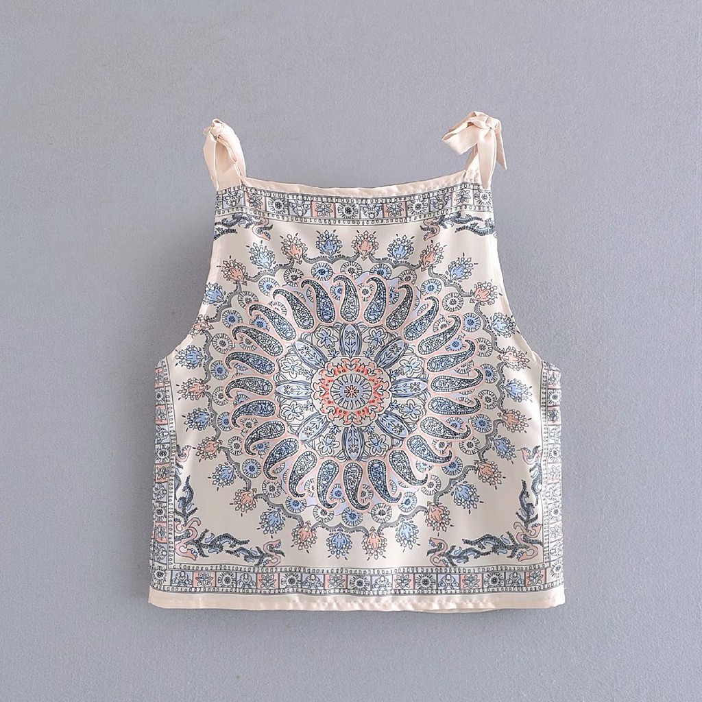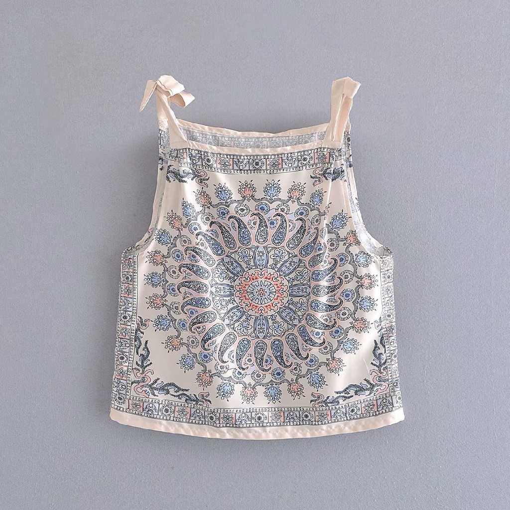 TANK TOP SILKY WANITA MUSIM PANAS MOTIF RETRO GAYA ELEGAN PREMIUM 6VEN1498