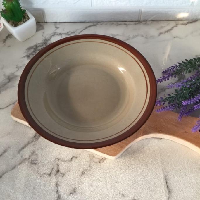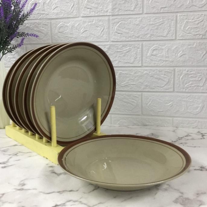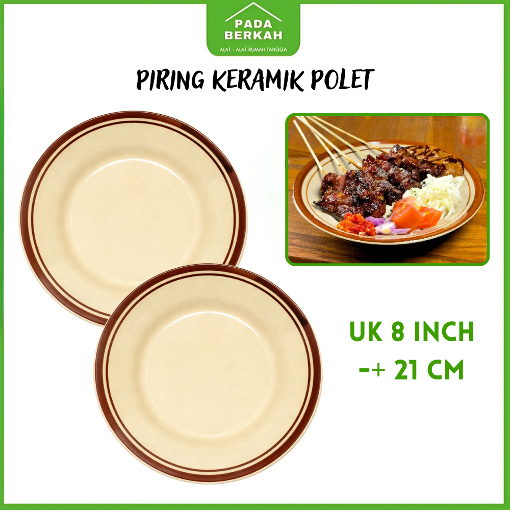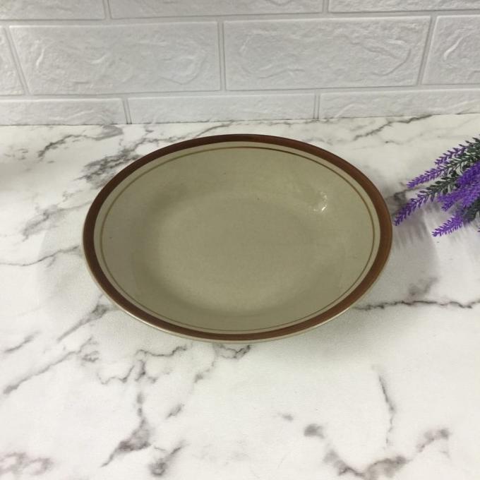 12 PCS Piring Makan Keramik Piring Warteg List Coklat 8 Inch Polet Lucky Ukuran 21 Cm BISA GOSEND
