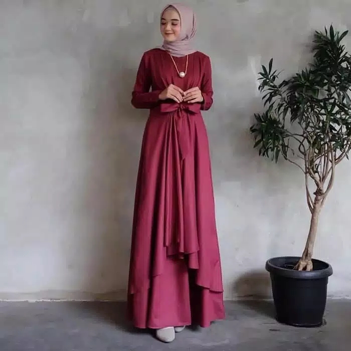 Gamis Rempel Moscrepe Premium Fashion Wanita Muslim Elegan Kekinian Baju Gamis Jubah Casual Gamis Pesta Kondangan - Aluna Dress