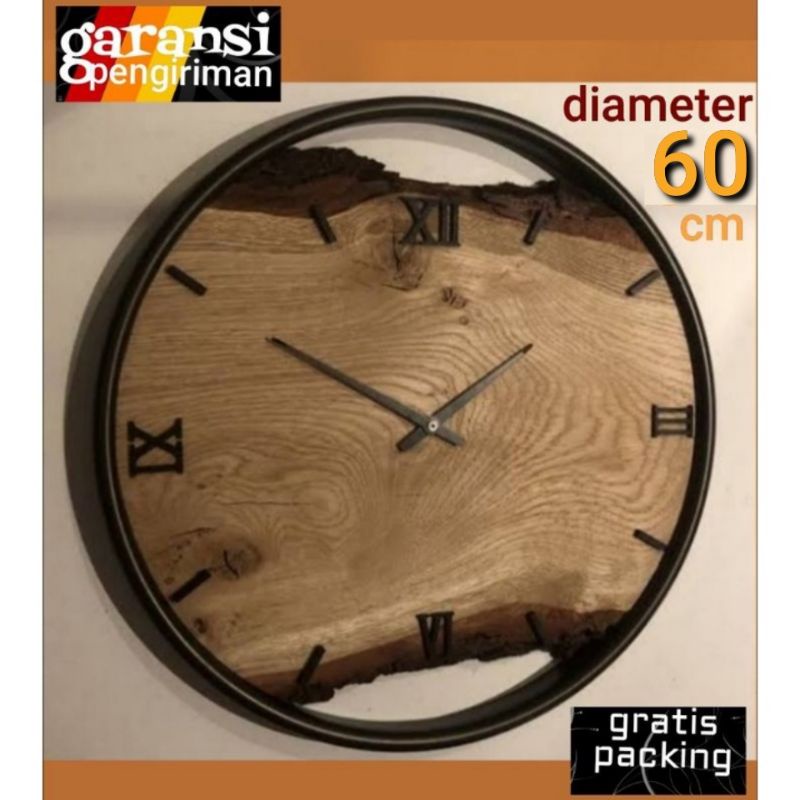 Jam Dinding Analog Diameter 60 cm | Hiasan Jam Dinding Unik Kayu Jati