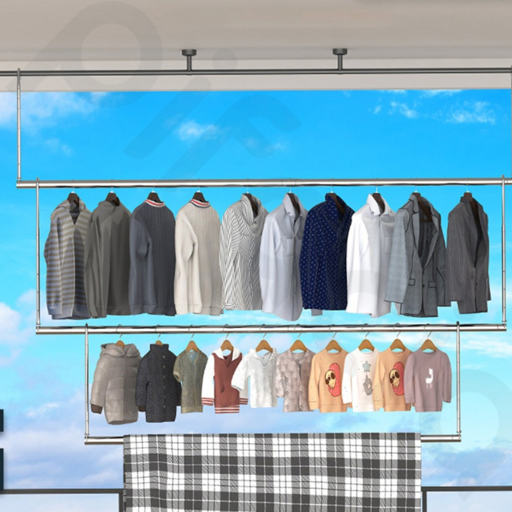 Jemuran Gantung Portable Stainless Steel: Kanopi, Balkon, Plafon - Lipat & Adjustable Premium
