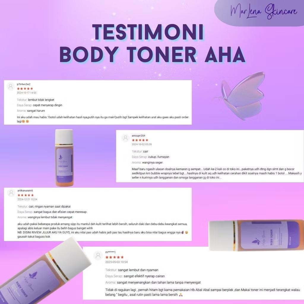 ECER 1 BOTOL BODY TONER MARLENA AHA / TONER BADAN UNGU STRONG