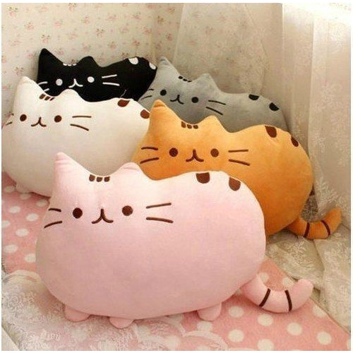 Bantal Kucing Kawaii Bahan Halus Boneka Hewan Lucu Hadiah Ulang Tahun Anak