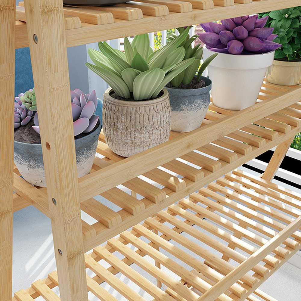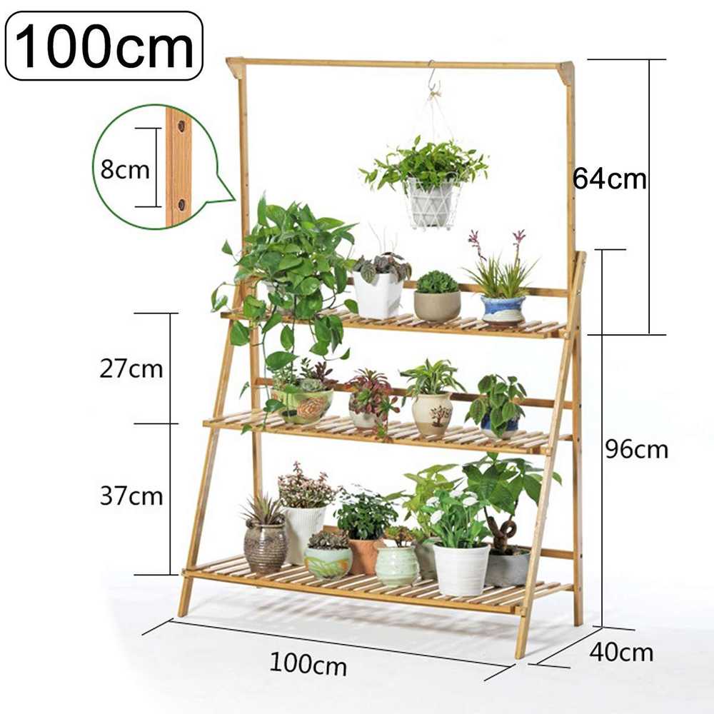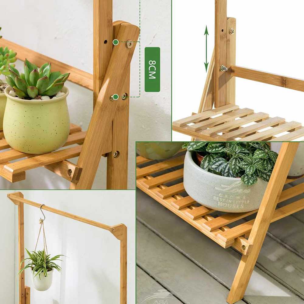 Rak Tanaman Kayu Plant Shelves with Hanging Rod 3 Tier Rak Pot Bunga Kayu 3 Tingkat