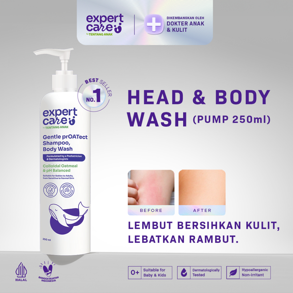 Expert Care Sampo & Sabun Mandi Bayi Newborn & Anak - Hair and Body 250 ml / 380 ml - Sampo & Sabun Mandi Bayi Newborn & Anak dengan Colloidal Oatmeal - Kulit Lembap & Rambut Tebal
