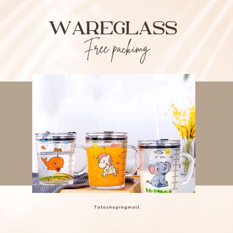 GELAS ANAK GELAS KACA KARAKTER ANIMAL GELAS KOPI WAREGLASS CUP