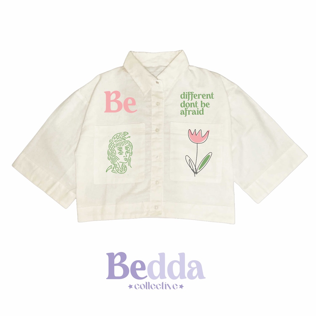 Bedda Alurra Shirt / Kemeja Oversize Linen Crop Tebal Broken White