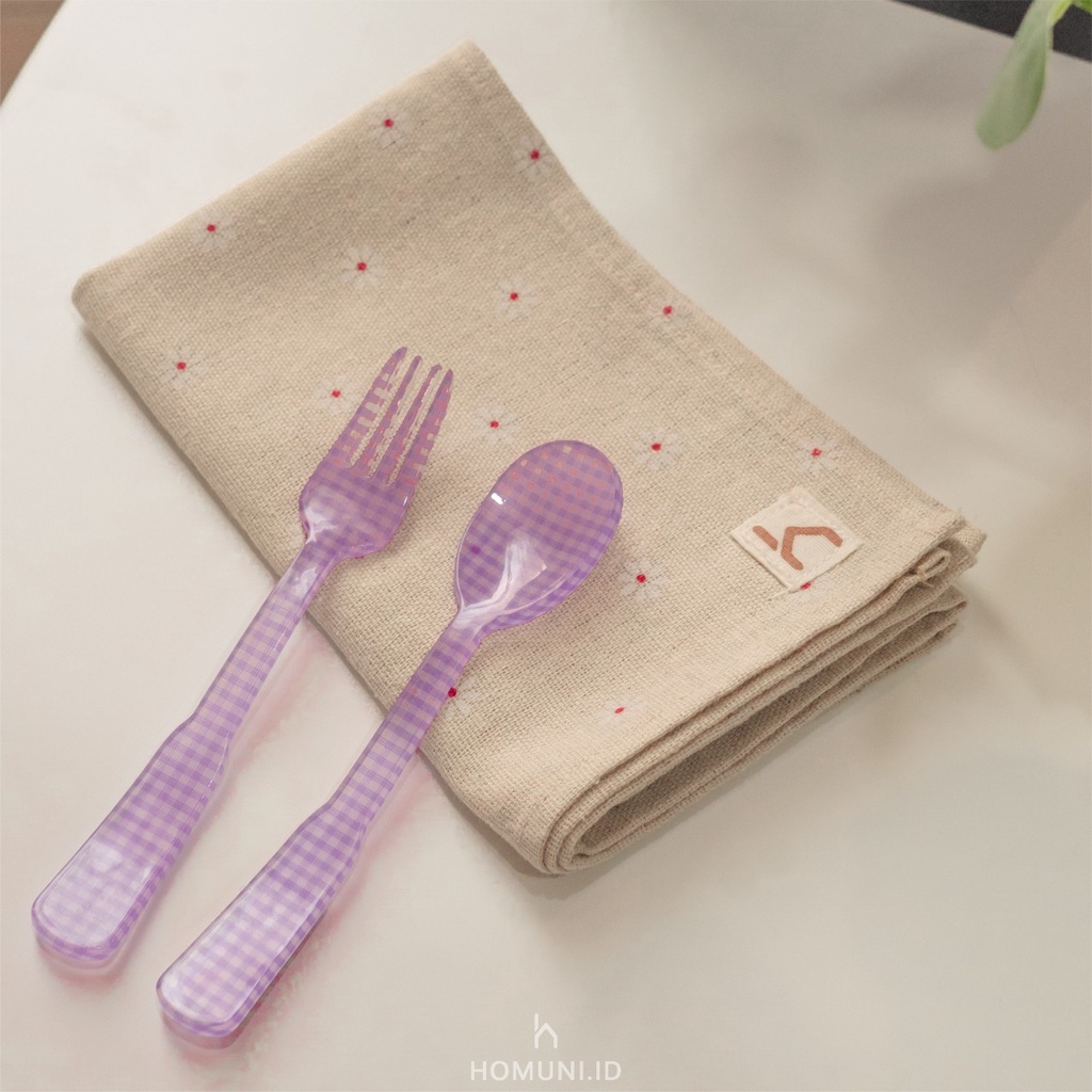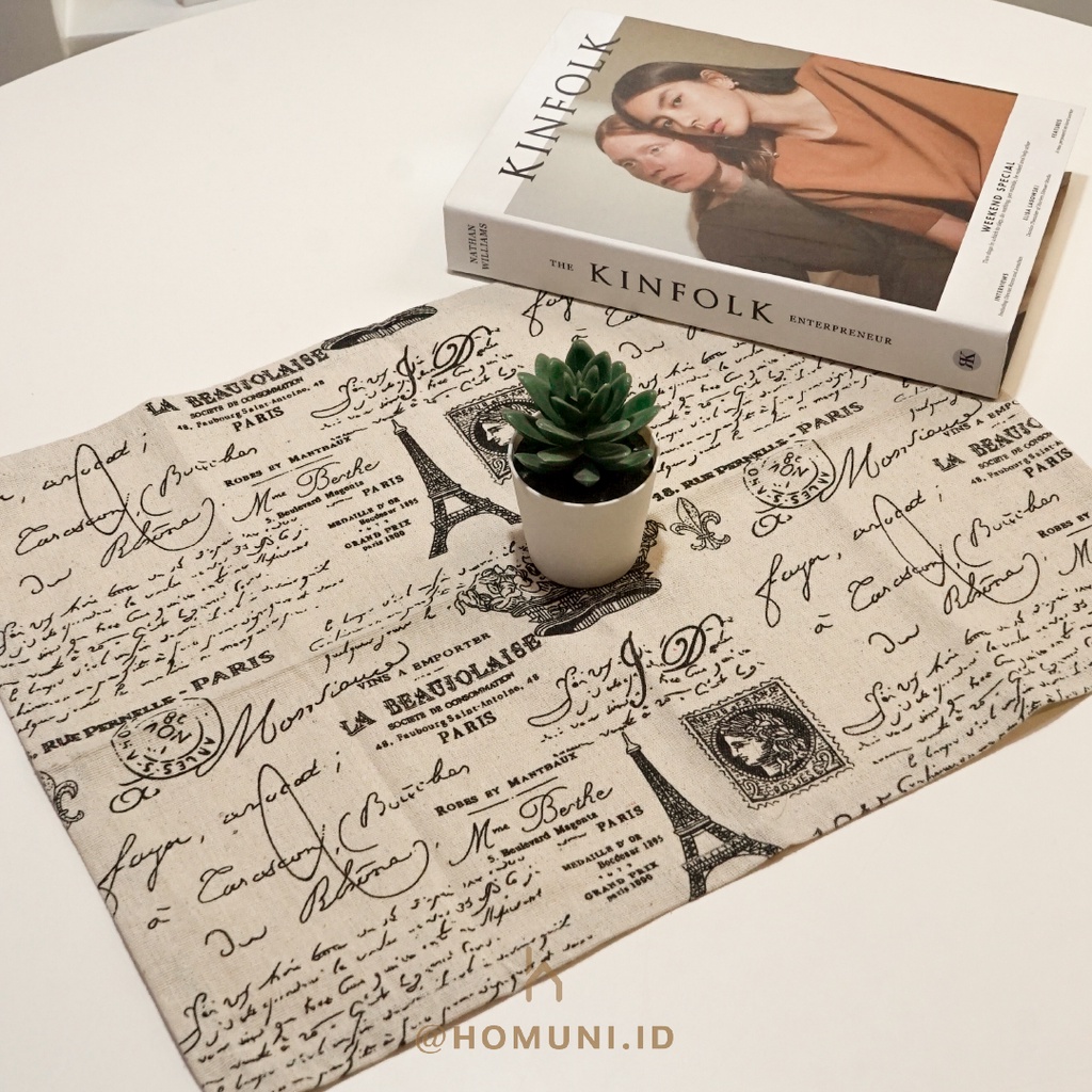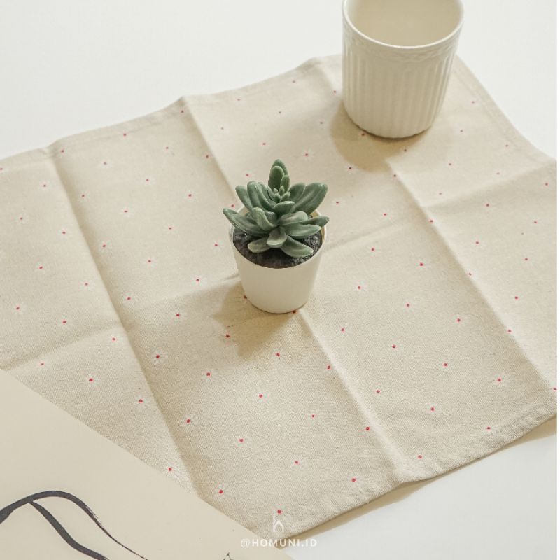Napkin Kain Kanvas/Tatakan Piring/Alas Piring Motif Bunga Daisy Vintage/Property Foto Makanan/Alas Keyboard/Lap Serbet/Alas Foto