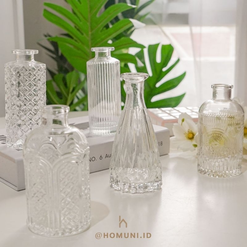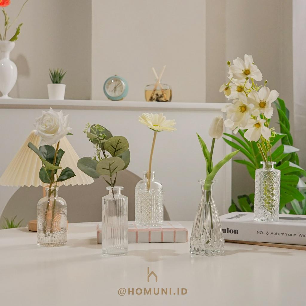 Vas Bunga Botol Kaca Bening Aesthetic/Glass Bottle Flower Vase Transparent Clear