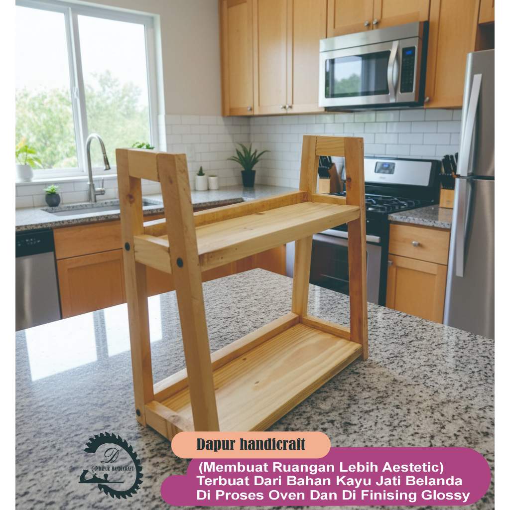 Rak Bumbu Dapur 2 Tingkat / Rak Pawon Bahan Kayu Dengan fernis Glossy