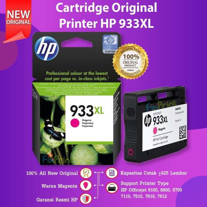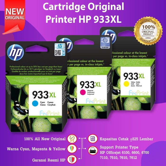 Cartridge Original HP 933XL 933 XL Cyan CN054AA Tinta Printer HP Office jet 6100 6600 6700 7110 7510 7610 7612
