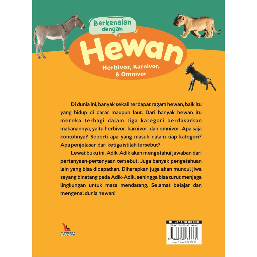 Buku Berkenalan dengan Hewan Herbivora, Karnivora, dan Omnivora - Kira Seta - Laksana