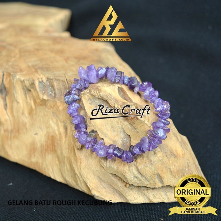 Gelang Batu Kristal Crystal Amethyst Kecubung Ungu Rough Asli Original Natural