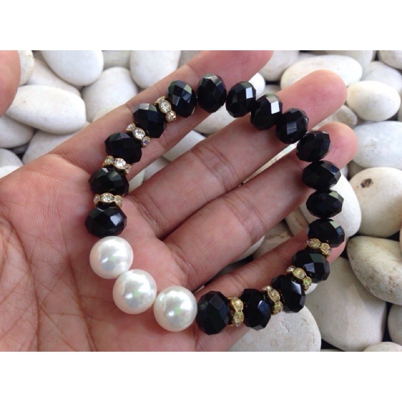 Gelang Batu Kristal Mix Mutiara Shell