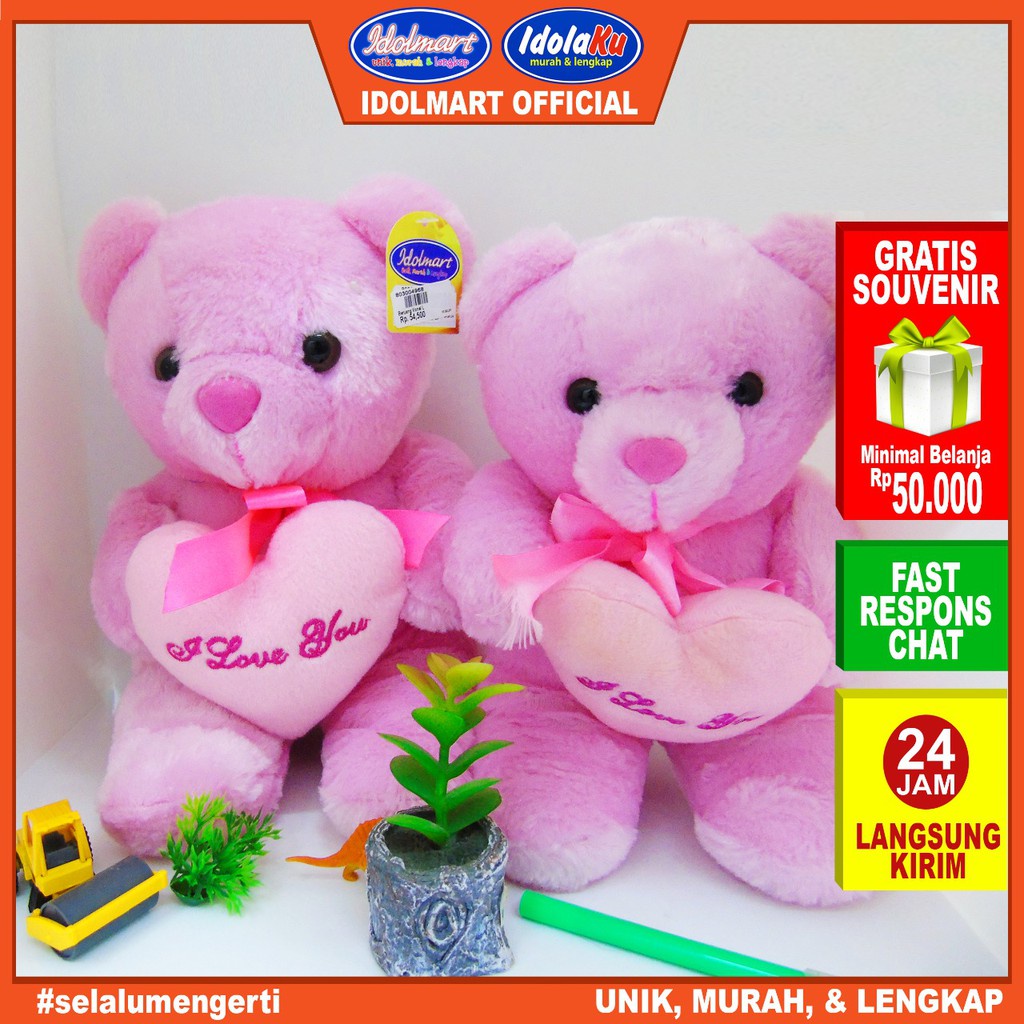 IDOLMART Boneka Beruang Teddy Bear bahan vonela size L 35 cm - Boneka Bulu Bogor