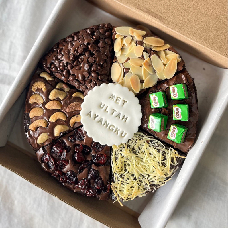 Brownies Pizza (Diameter 20cm) Custom Tulisan Birthday / Ulang Tahun (Baca Deskripsi)