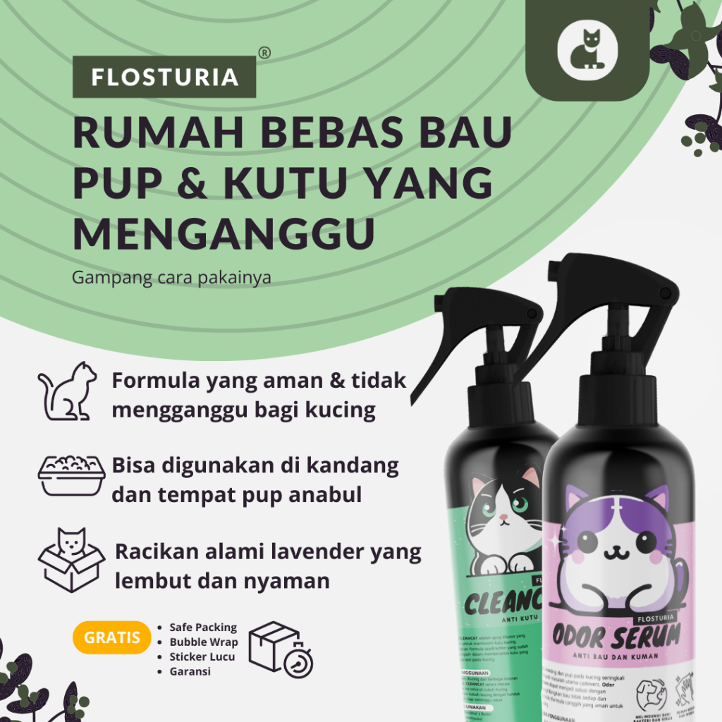 Flosturia Paket Spray Penghilang Bau Pesing Pup Pipis Kucing Kandang Anjing Kelinci Pet Odor Remover