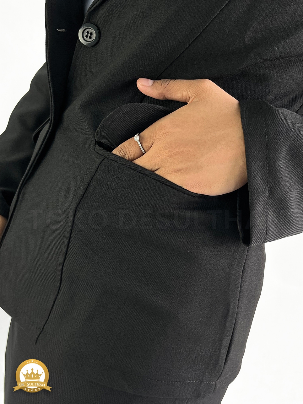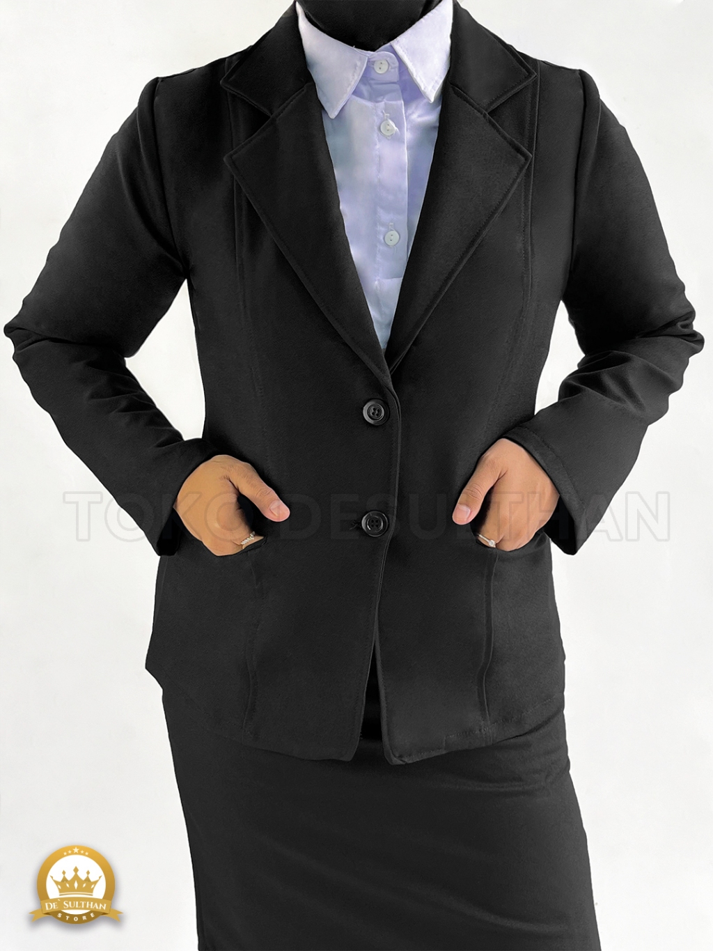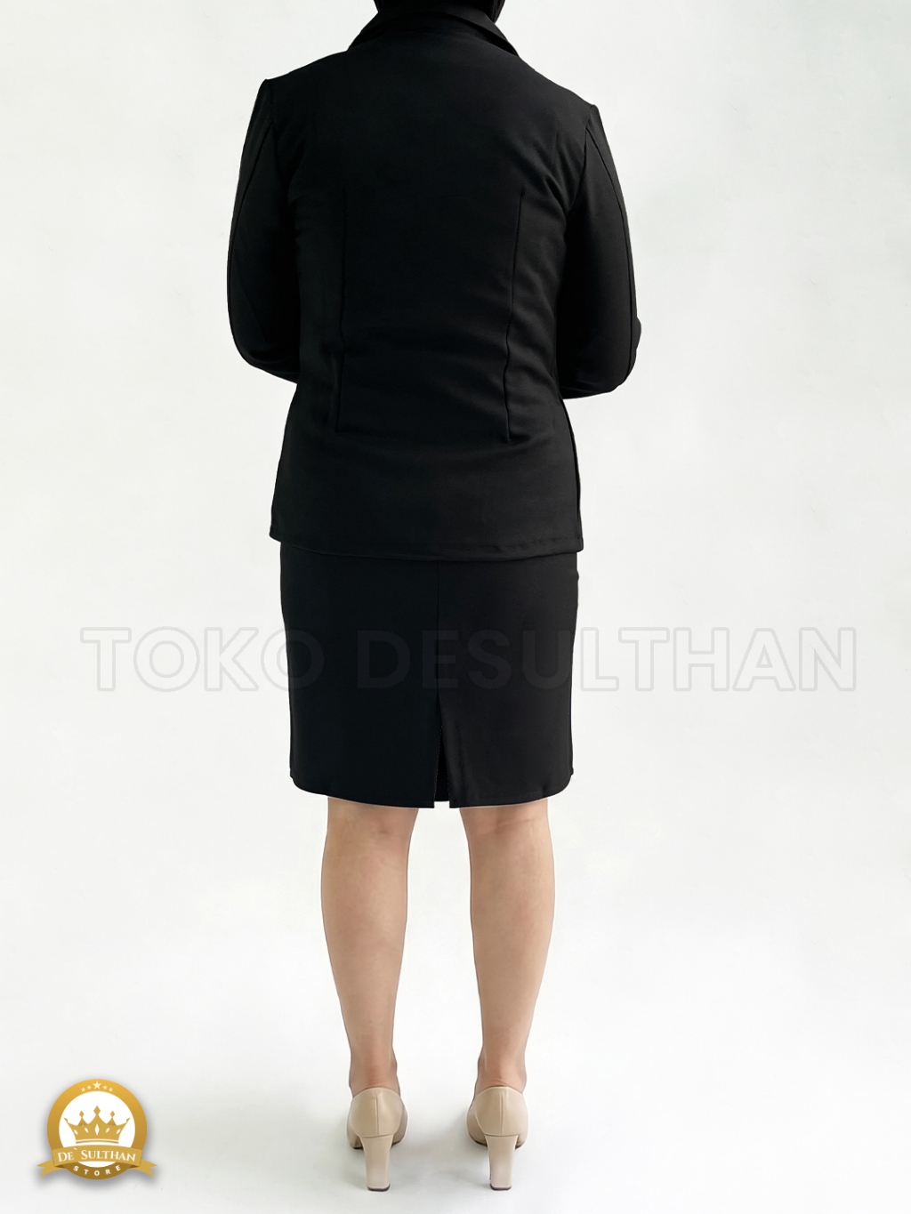 Stelan Blazer Wanita Dengan Rok Span Mini Pendek | Outfit Kantor Formal Elegan | Setelan Jas Kerja Cewek Polos Dewasa Remaja | Warna Hitam Abu | Big Size Jumbo 7/8 Korea | Pakaian Kantoran Stylish Terbaru