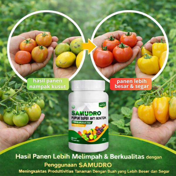 PUPUK SAMUDRO PUPUK BOOSTER ANTI RONTOK EFEKTIF FASE PEMBUNGAAN DAN PEMBUAHAN PADA SEMUA TANAMAN PANEN MELIMPAH