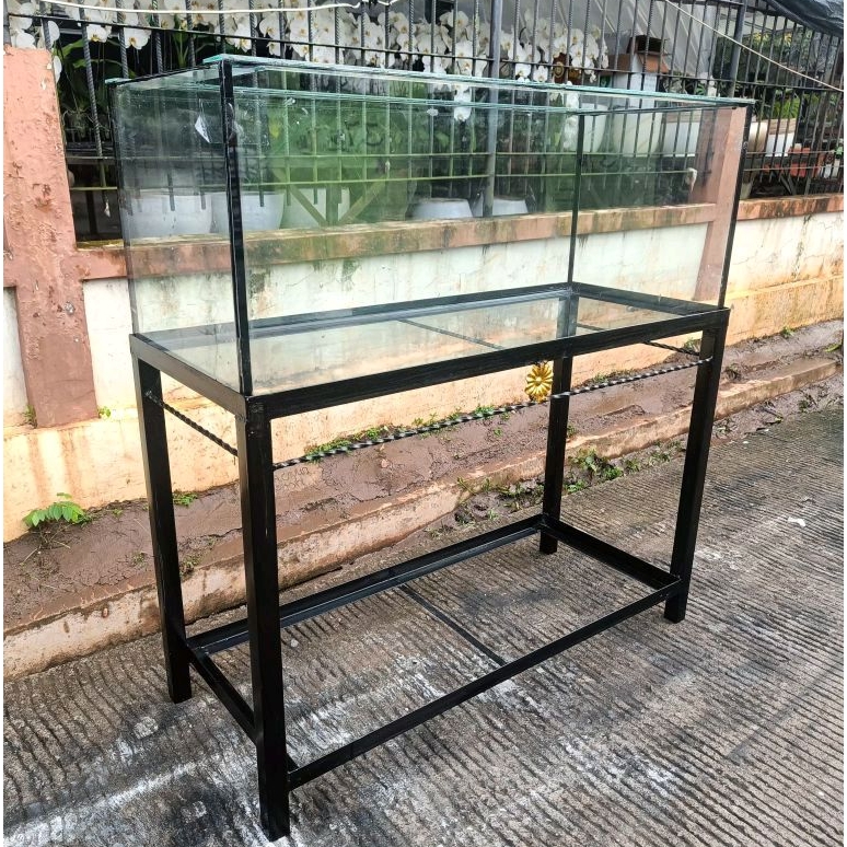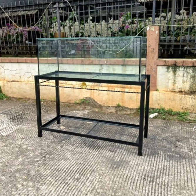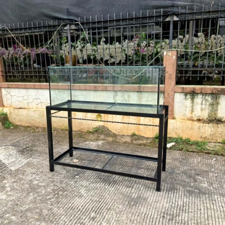 Aquarium 100x40x40 silent/lem hitam+Rak Hollo Kotak Siku