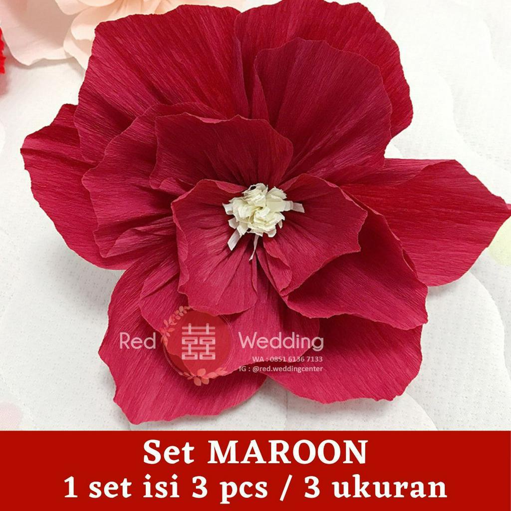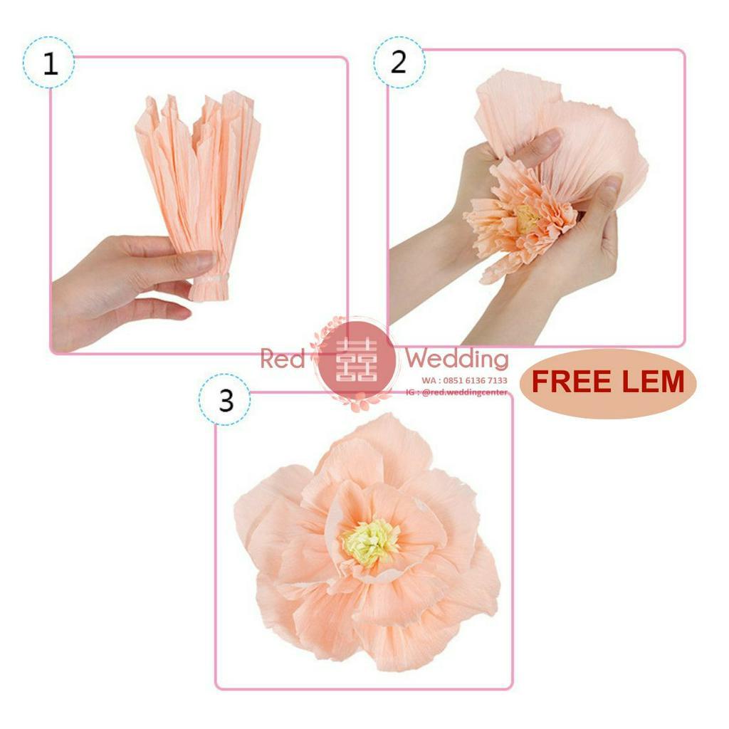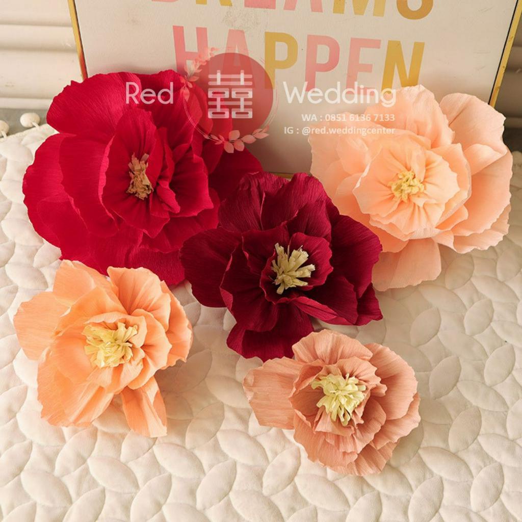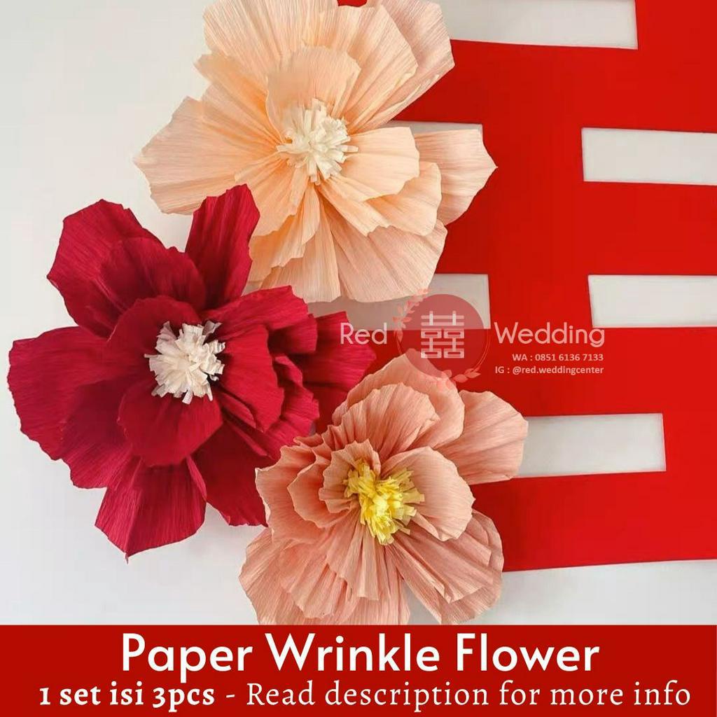 Set Dekor PAPER WRINKLED FLOWER mewah 3D Efek Dekorasi Ultah Wedding Sangjit bentuk Bunga untuk dekor Rumah / Kamar