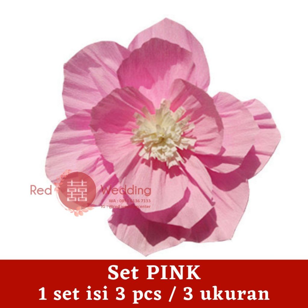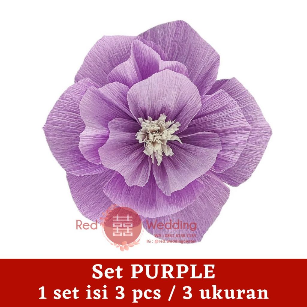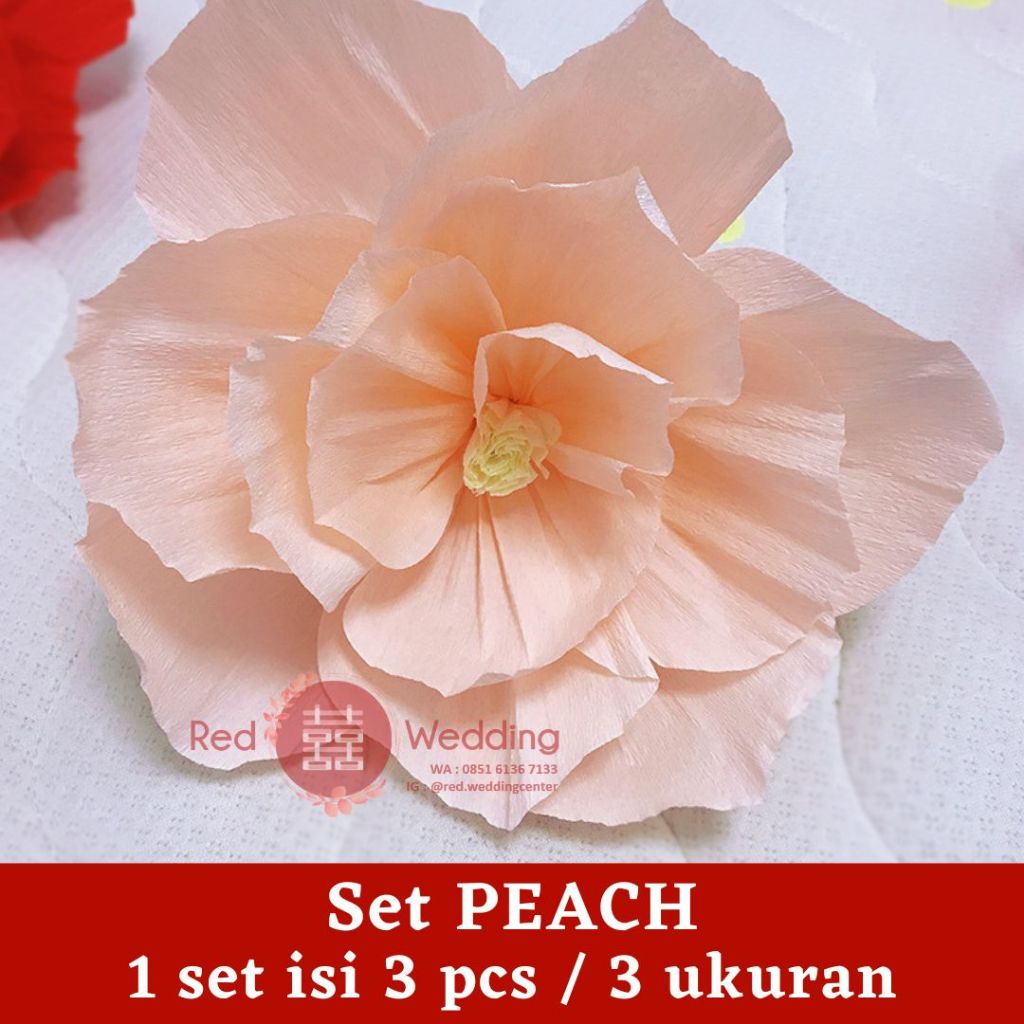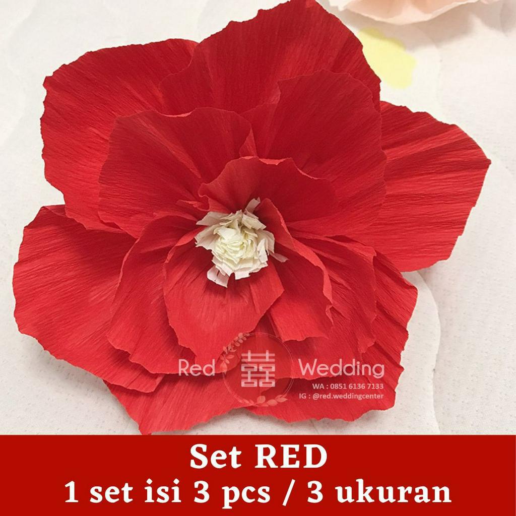 Set Dekor PAPER WRINKLED FLOWER mewah 3D Efek Dekorasi Ultah Wedding Sangjit bentuk Bunga untuk dekor Rumah / Kamar