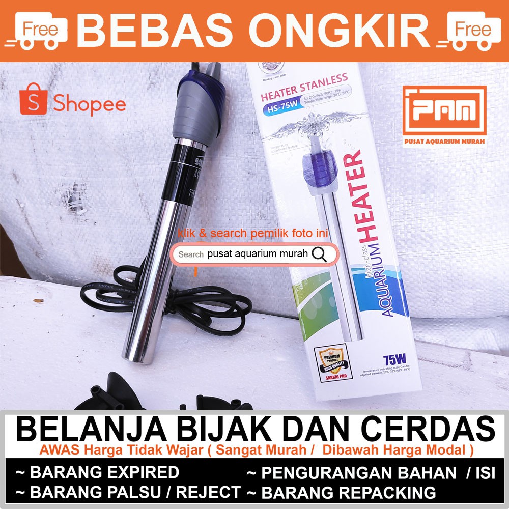 Pemanas Penghangat Aquarium Heater SAKKAI PRO 75 Watt Stainless Steel