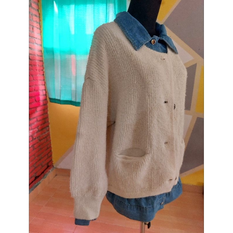 Cardi Velvet mix Kemeja Denim