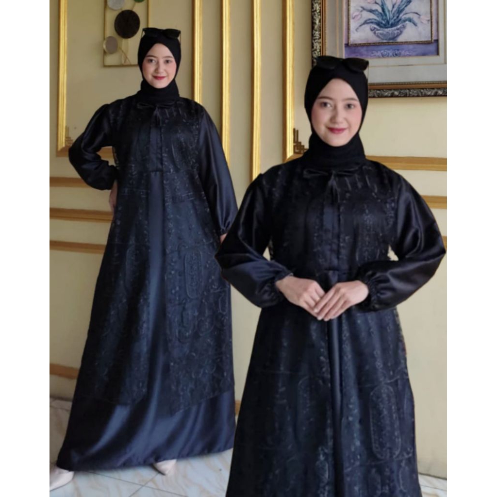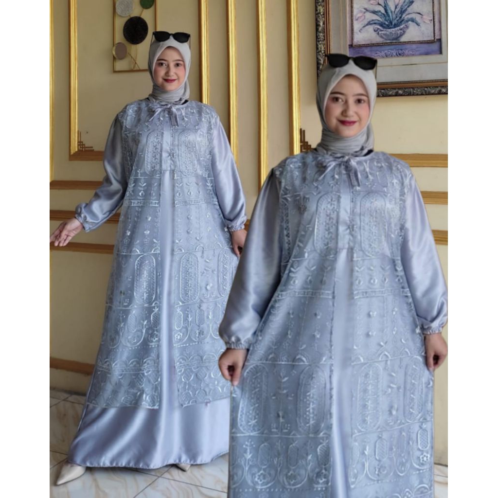 gamis abaya rompi terbuka lebaran viral brukat renda terbaru dengan tile busui friendly