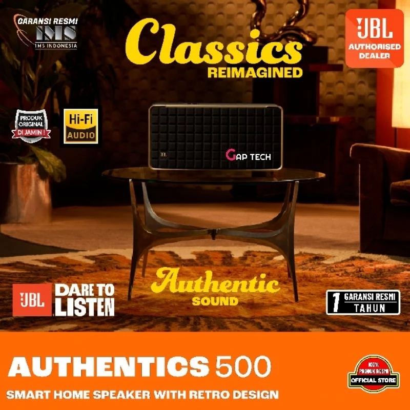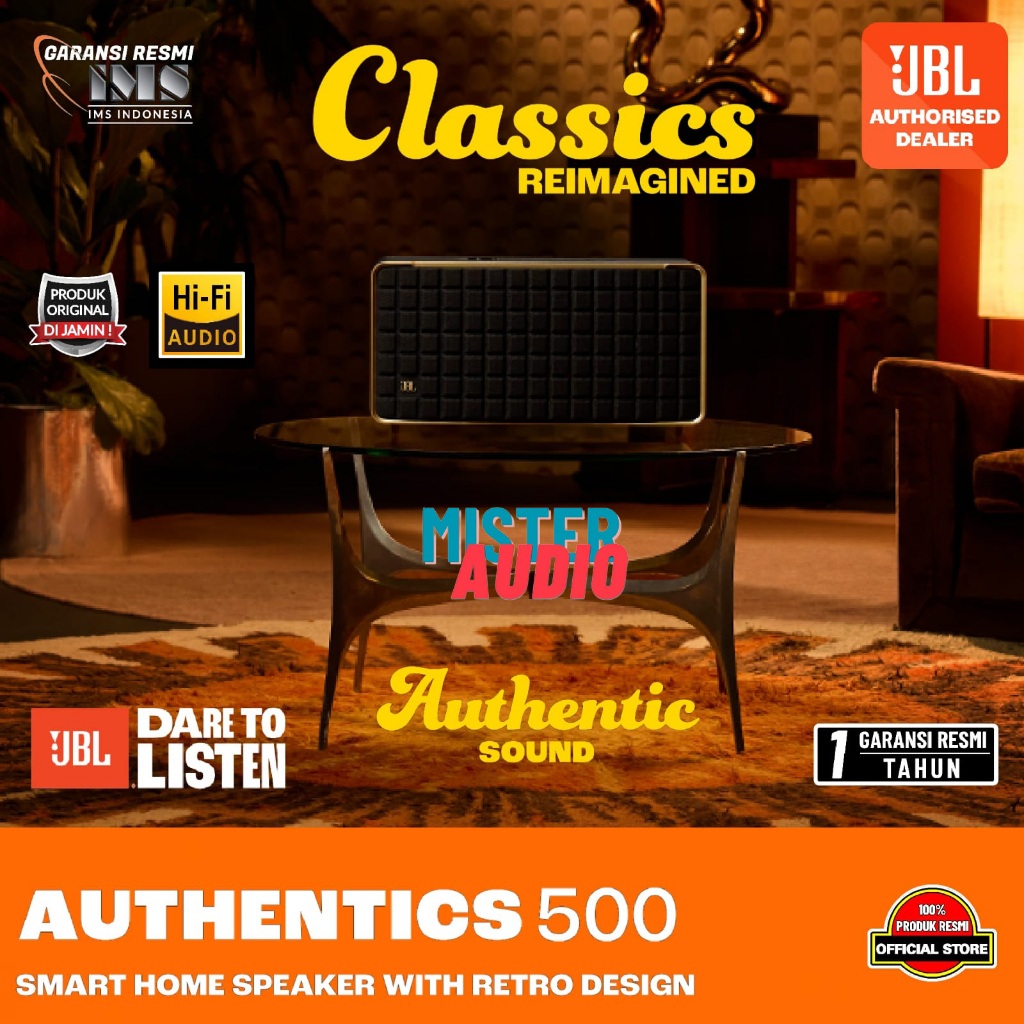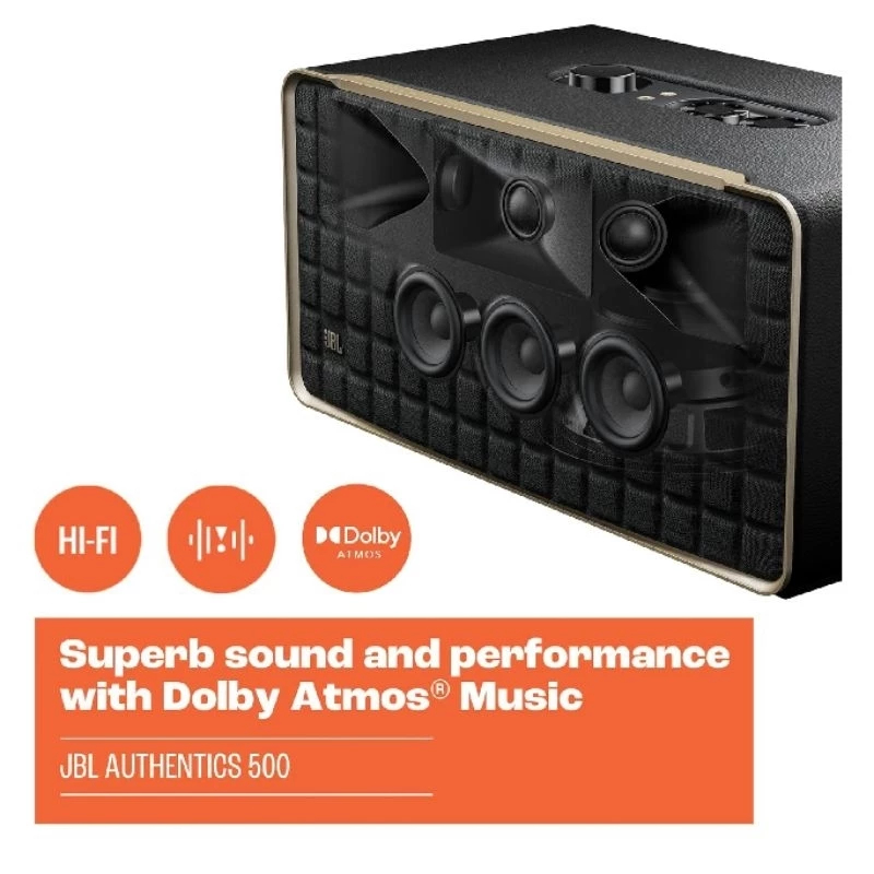 JBL Authentics 500 / Authentics500 / Authentic 500 Hi-Fi Smart Home Speaker with Wi-Fi, Bluetooth and Voice Assistants with Retro Design Original