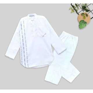 Baju muslim/koko anak laki-laki warna putih motif garis vertical